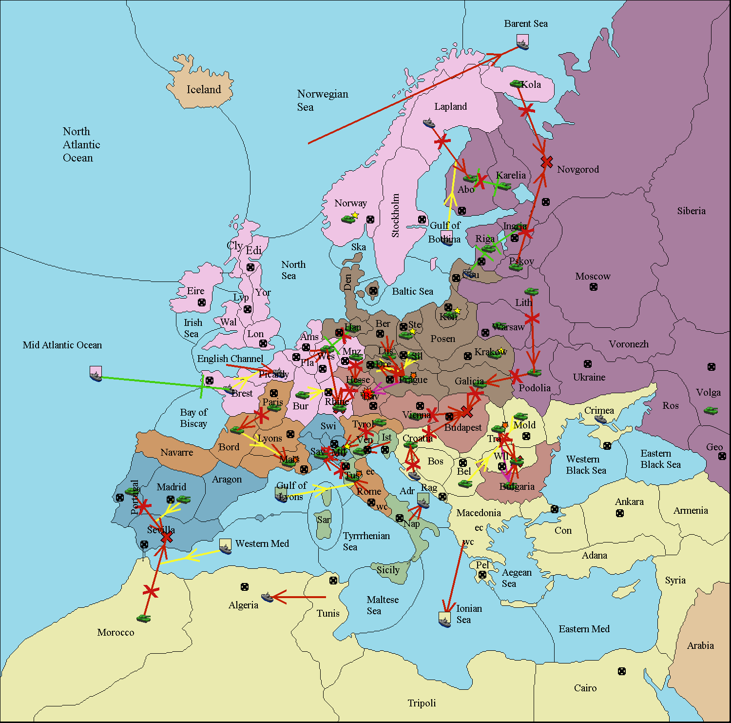 The fleet at Gulf of Lyons move to Rome (West Coast).