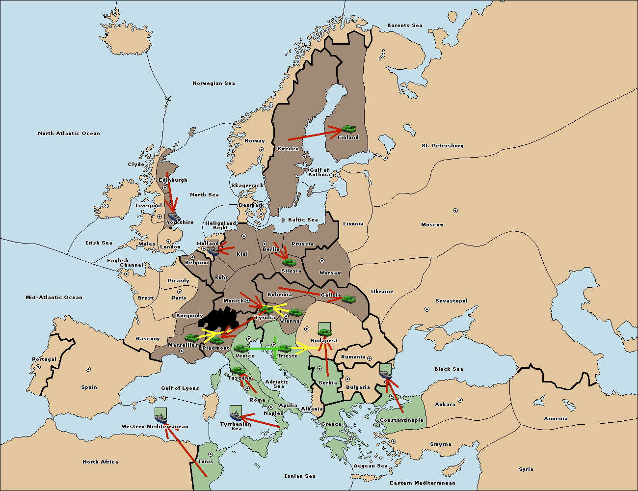 The army at Tyrolia move to Trieste.
