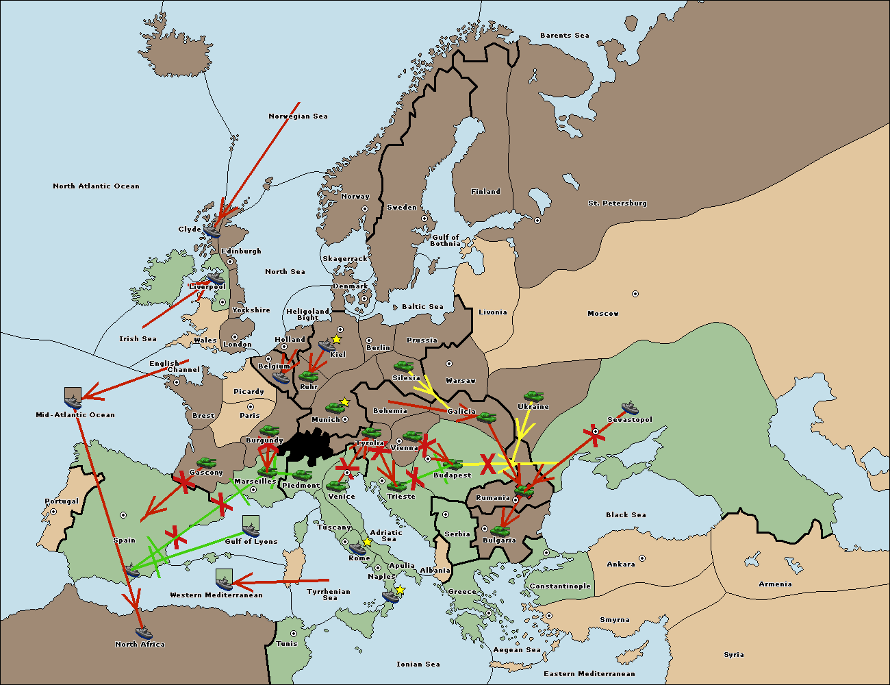 The fleet at Bulgaria (South Coast) move to Constantinople.