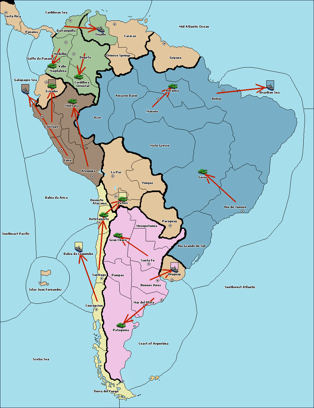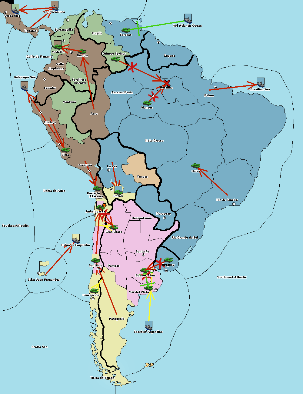 The fleet at Brazilian Sea move to Coast of Argentina.
