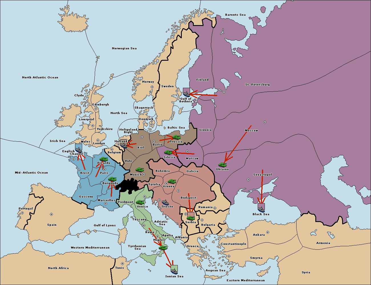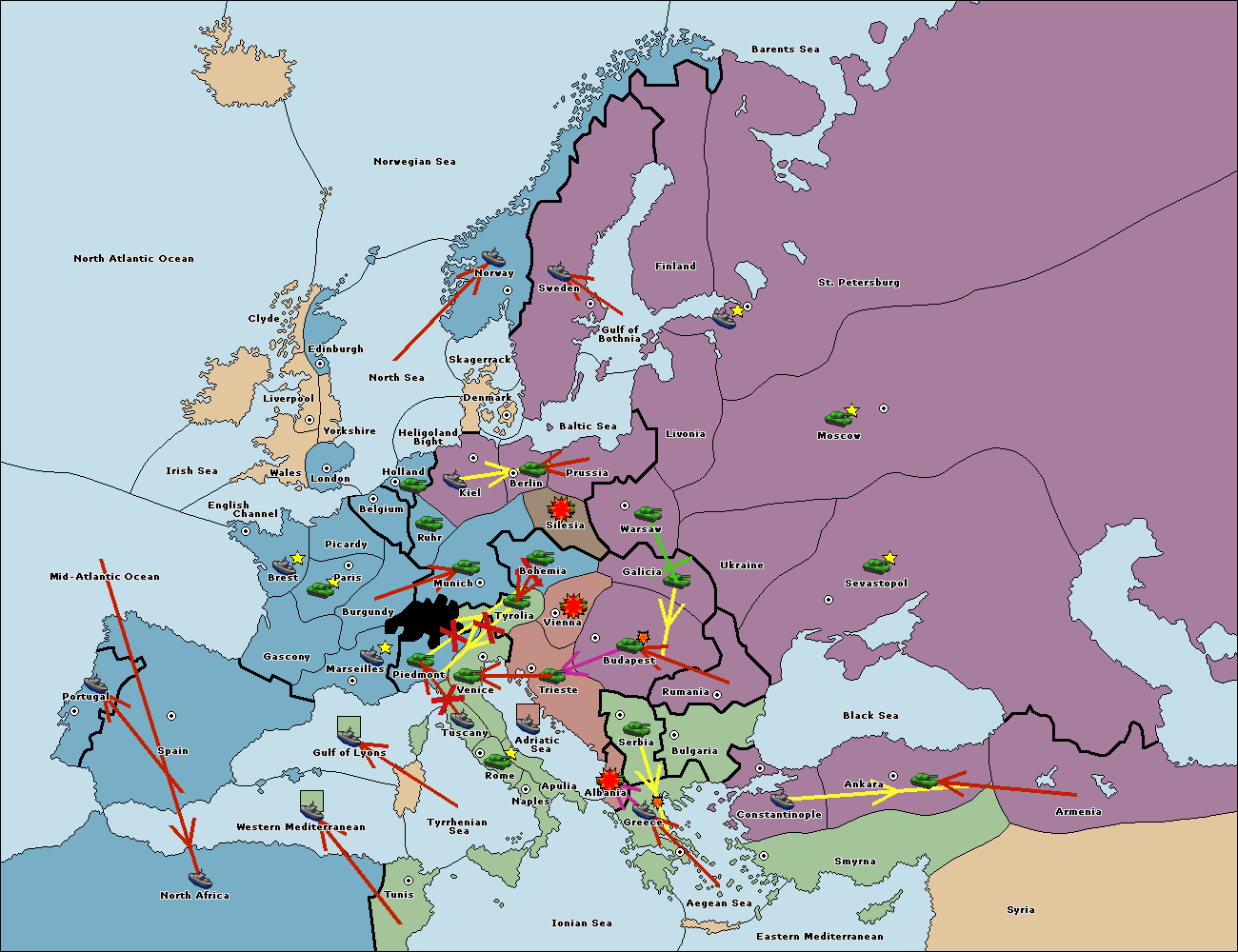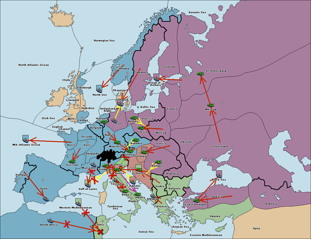 The fleet at Gulf of Lyons move to Tyrrhenian Sea.