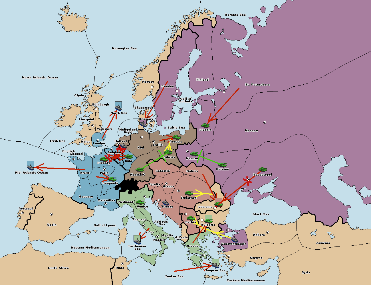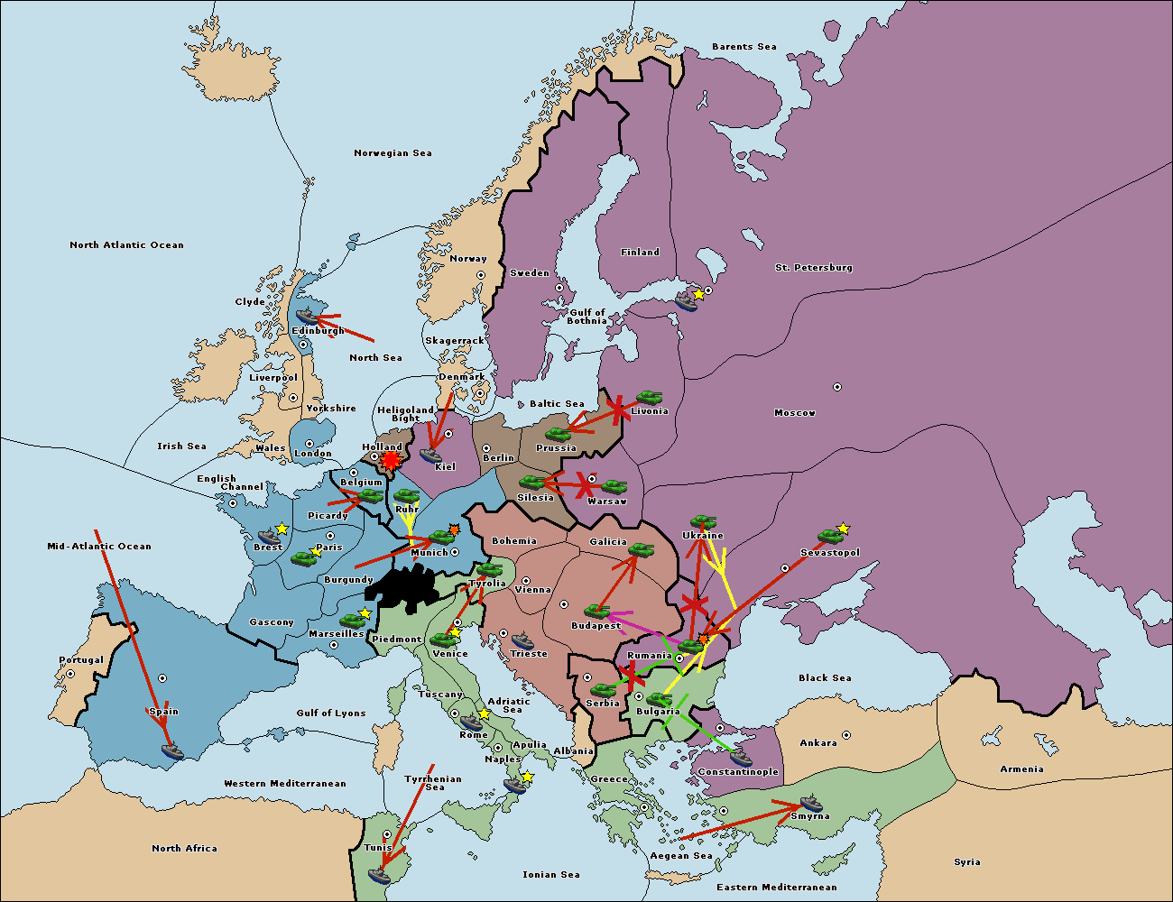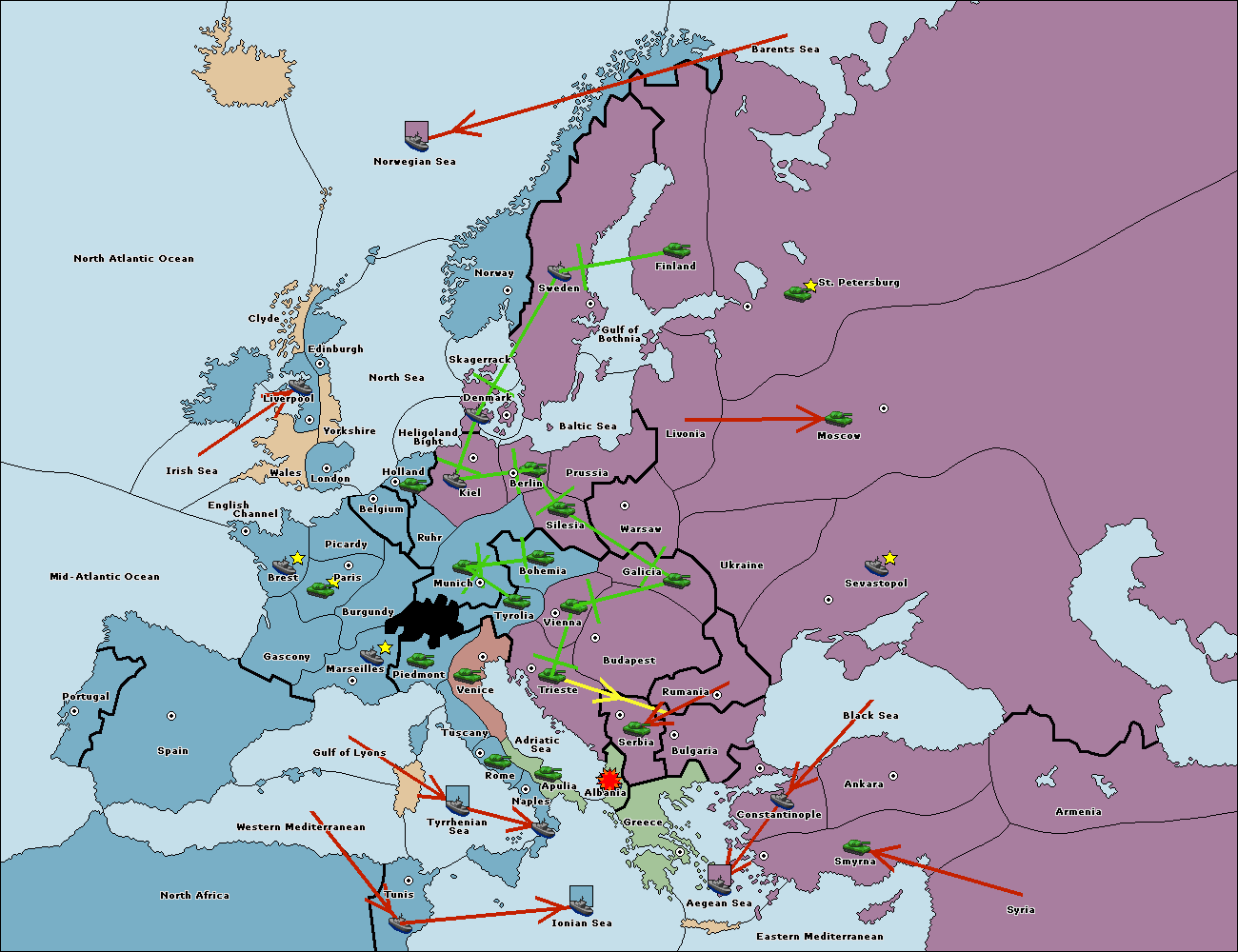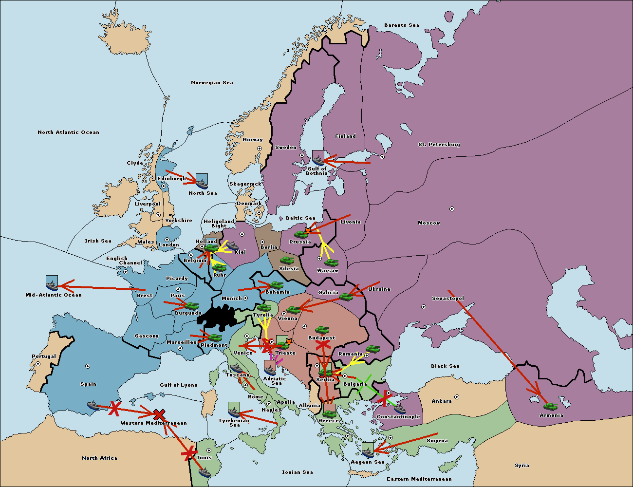 The fleet at Constantinople support move to Bulgaria from Greece.