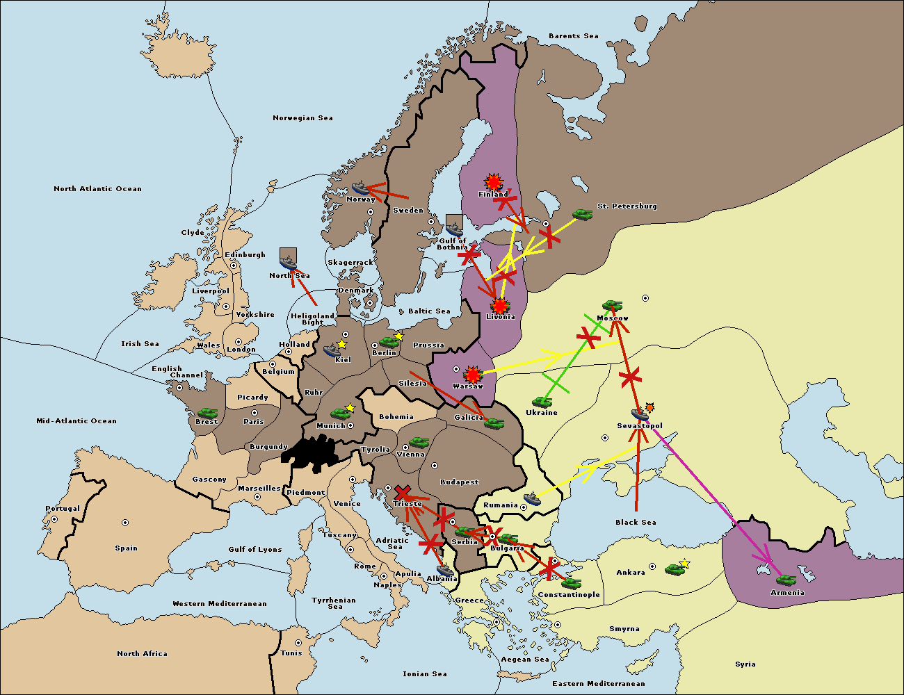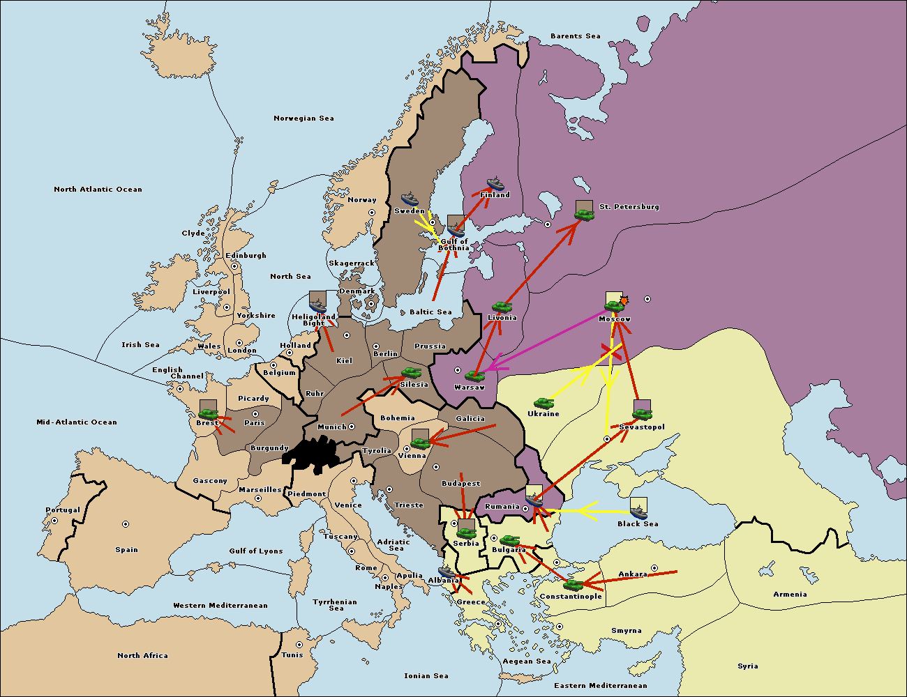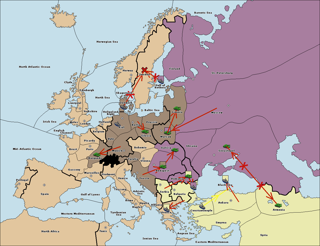 The fleet at Bulgaria (South Coast) move to Greece.