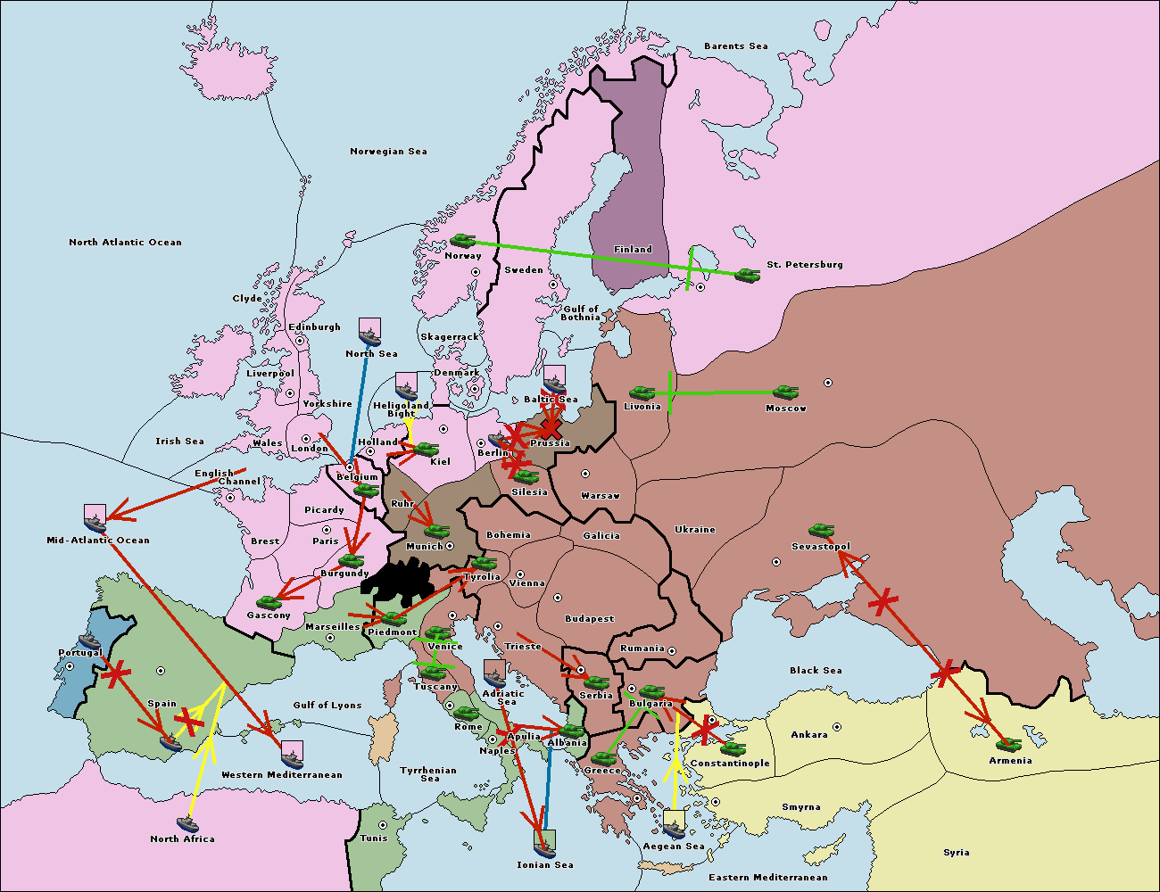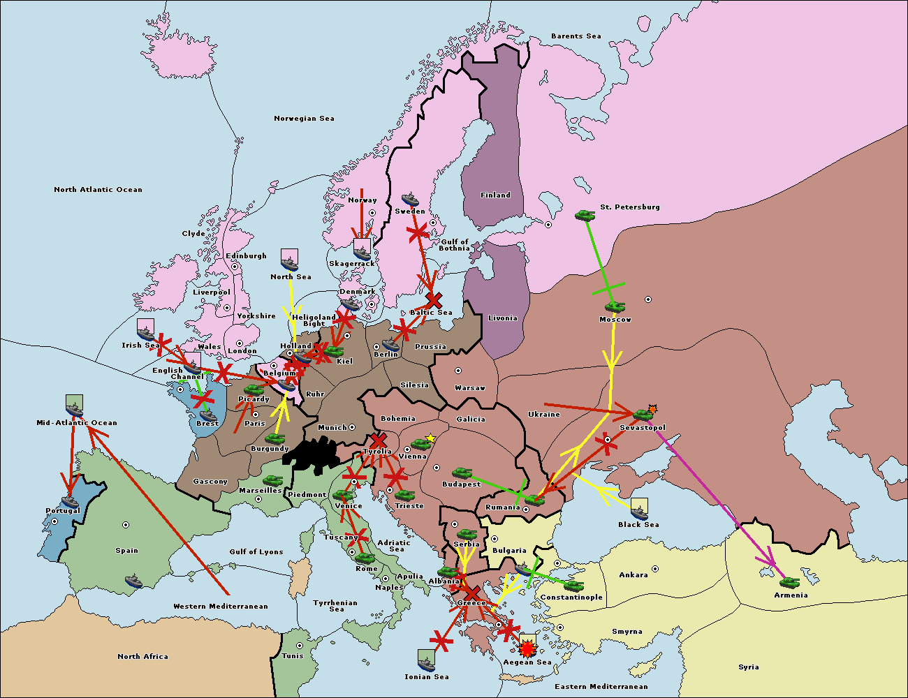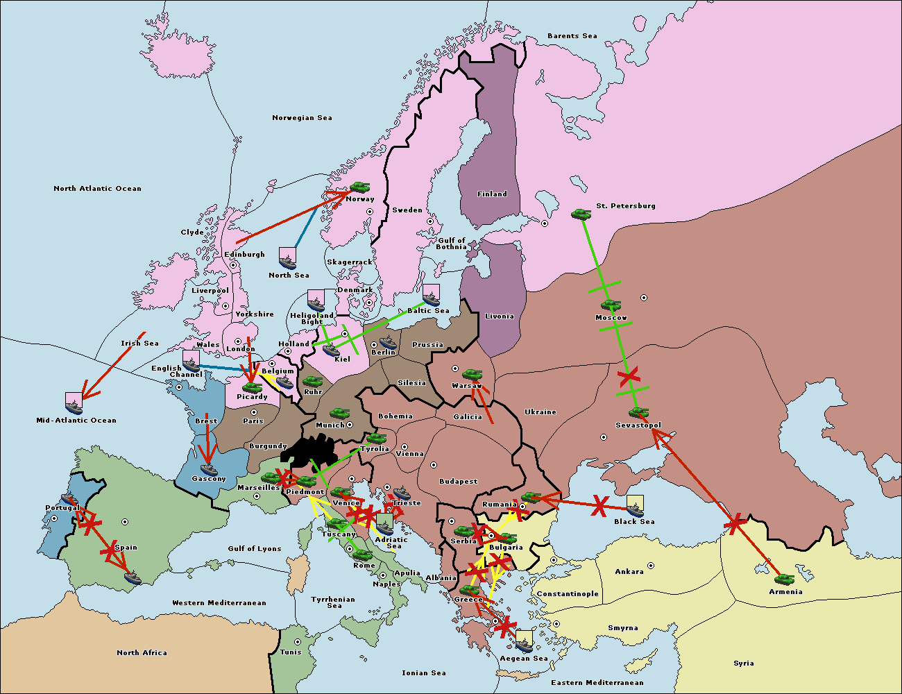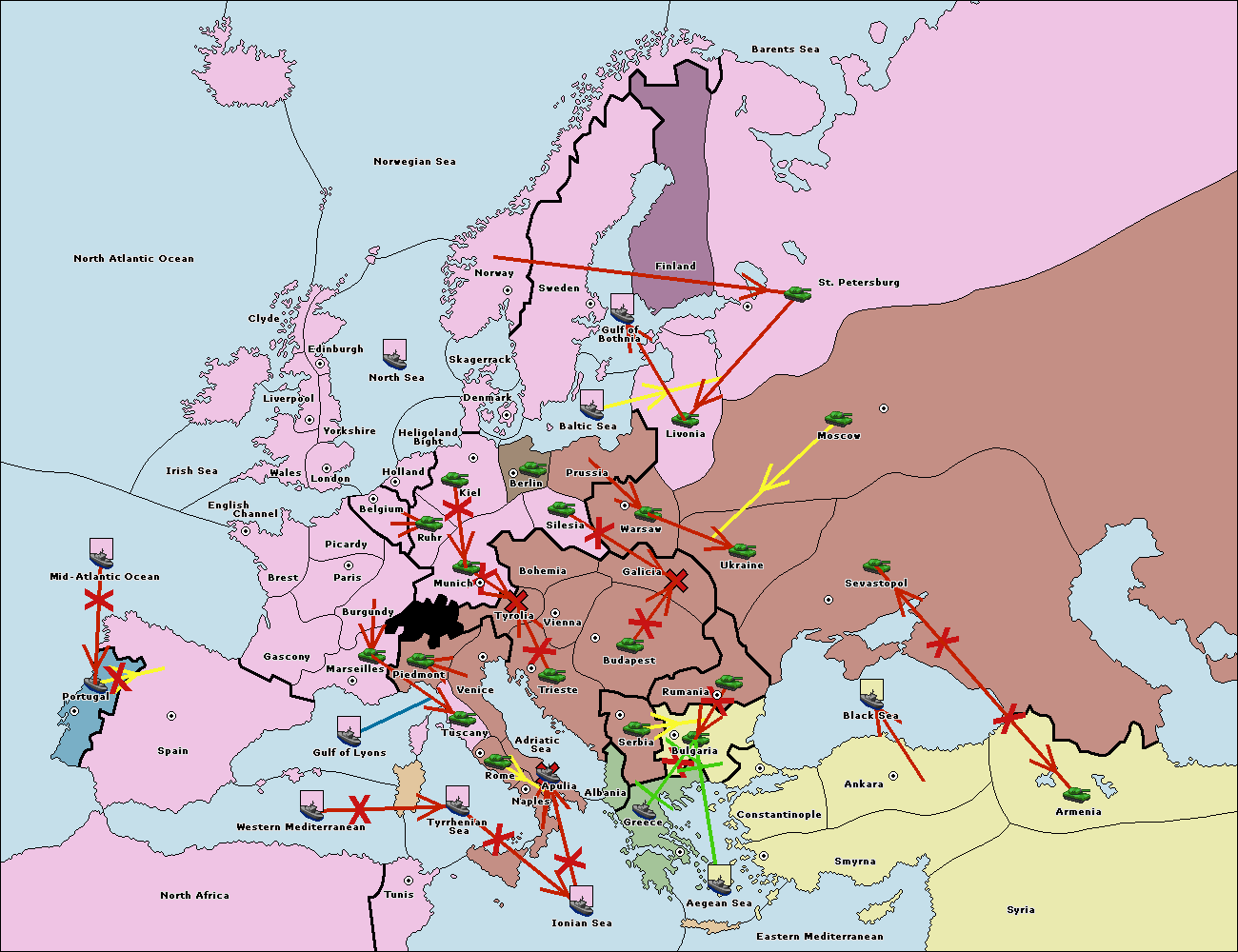 The fleet at Bulgaria (South Coast) move to Greece.