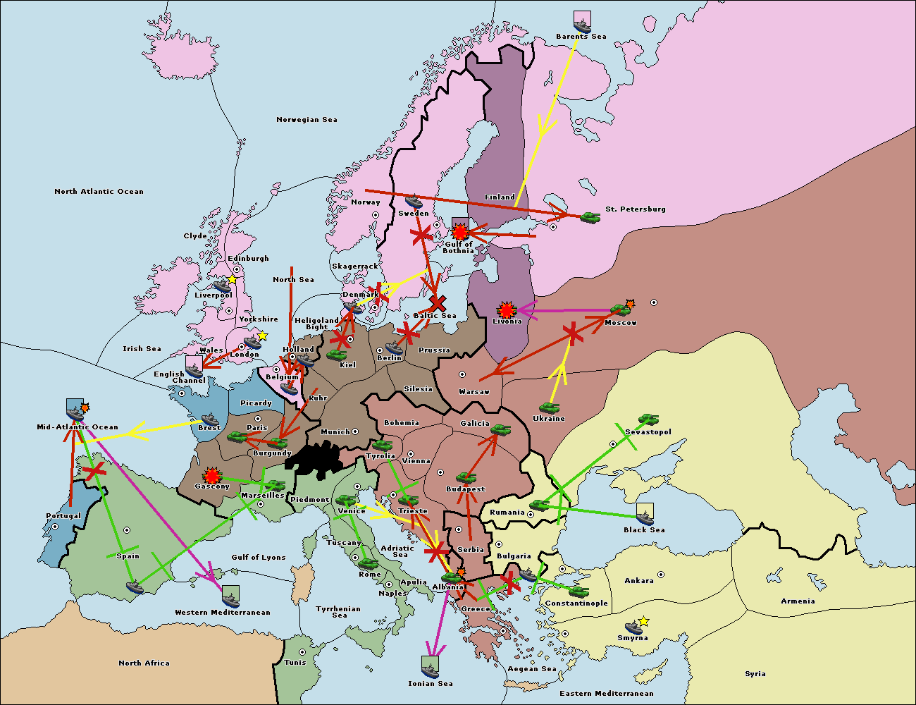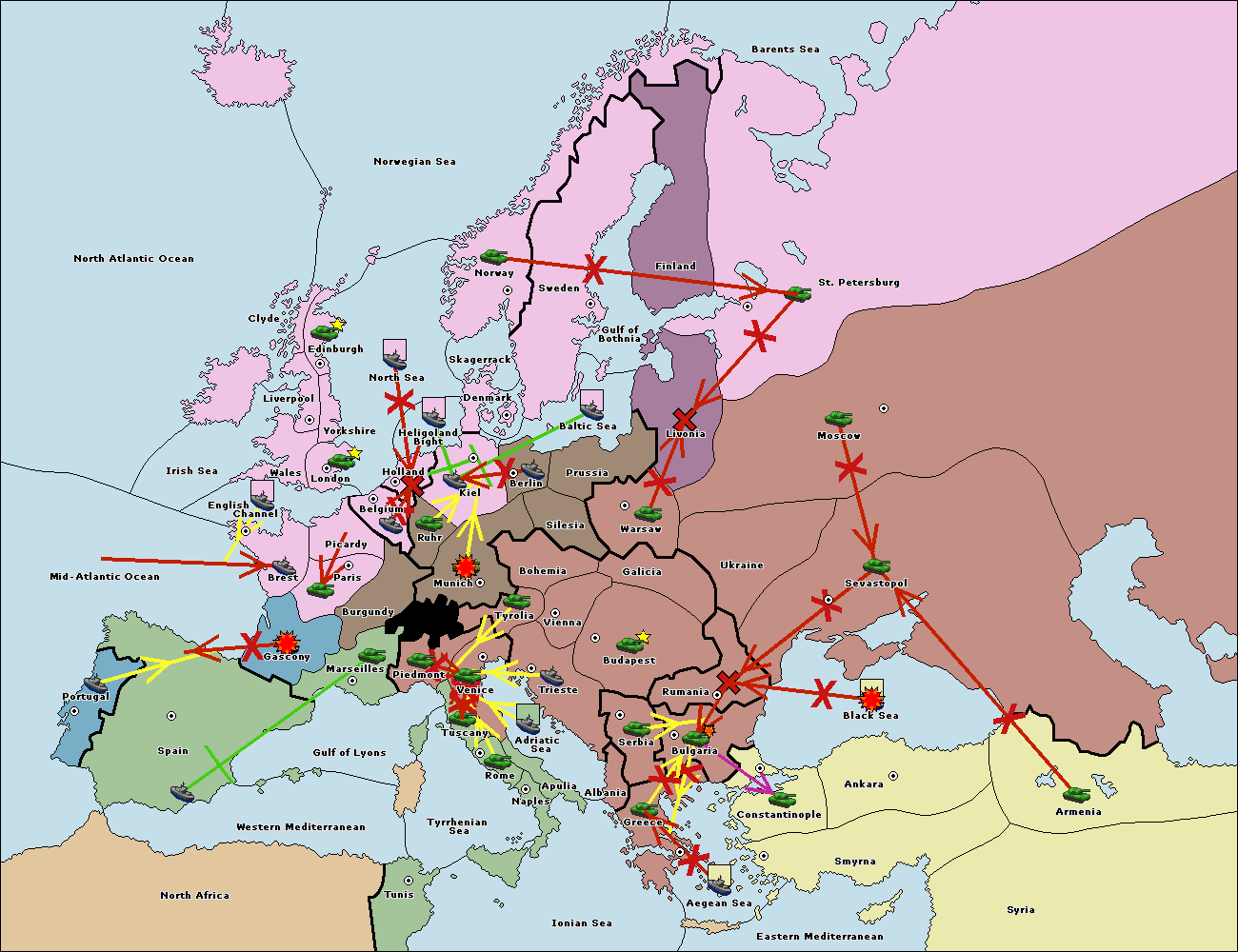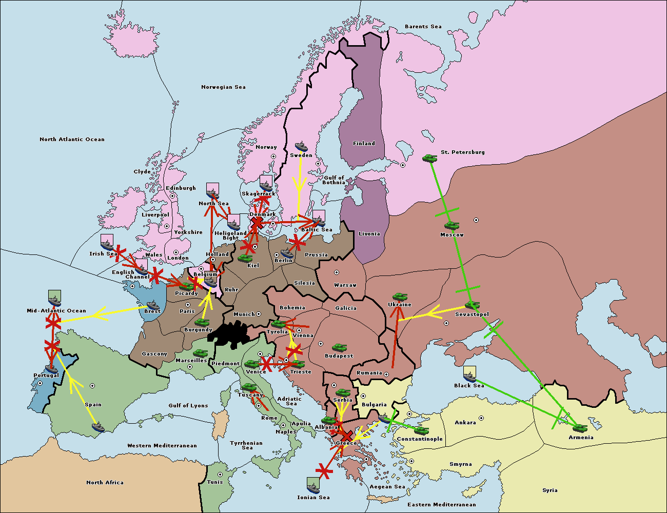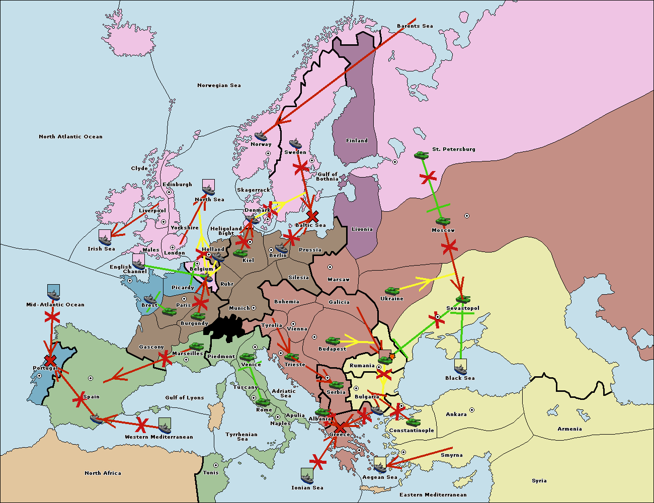 The fleet at Bulgaria (South Coast) move to Greece.