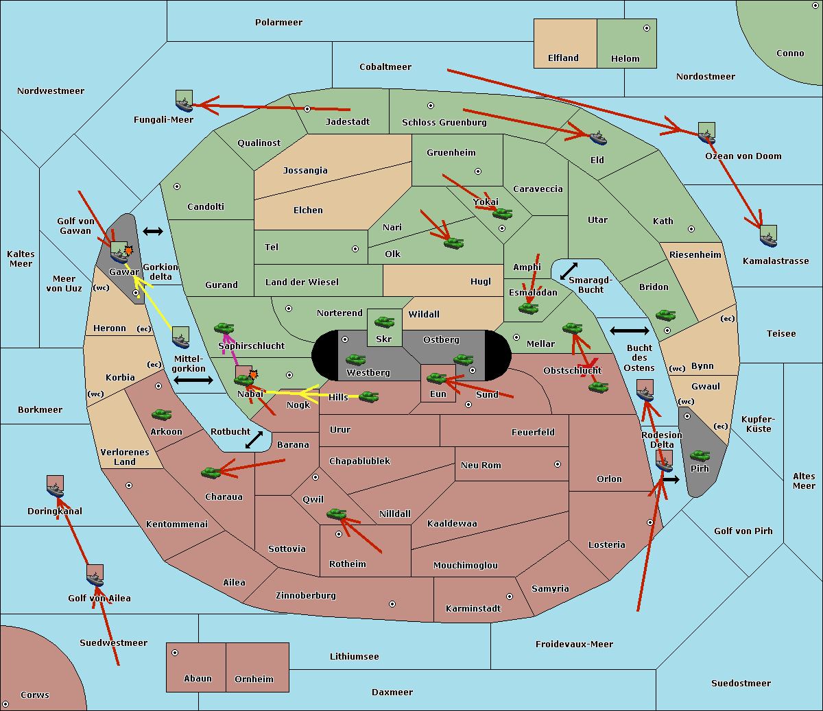 The fleet at Mitelgorkion support move to Gawar from Golf von Gawan.