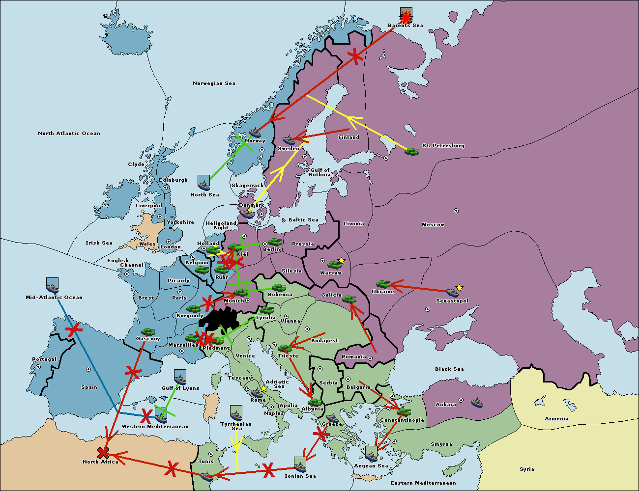 The fleet at Mid-Atlantic Ocean move to North Africa.