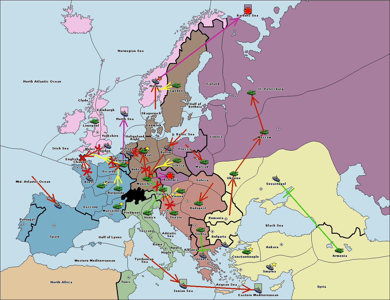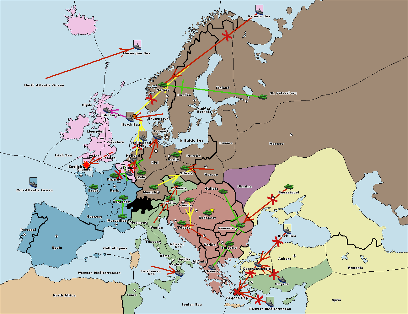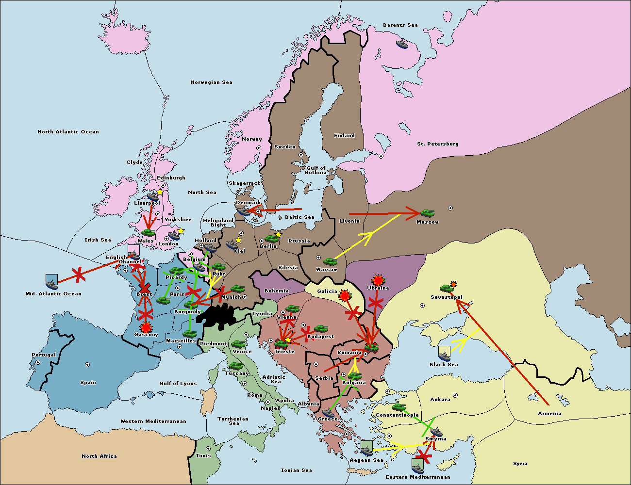 The fleet at Smyrna support move to Aegean Sea from Bulgaria.