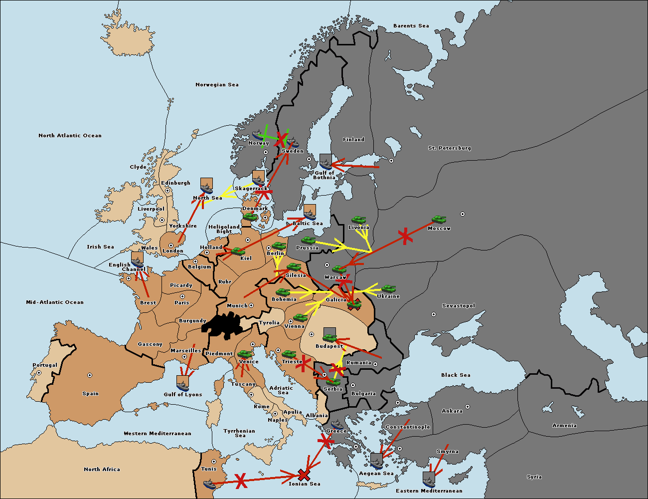 The fleet at Sweden support hold to Norway.