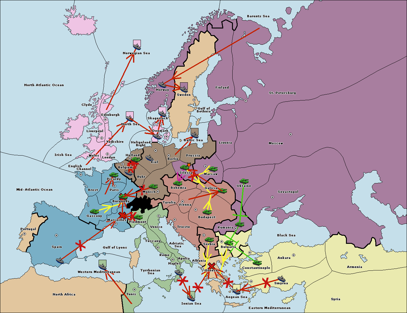 The fleet at Ionian Sea support move to Greece from Bulgaria.