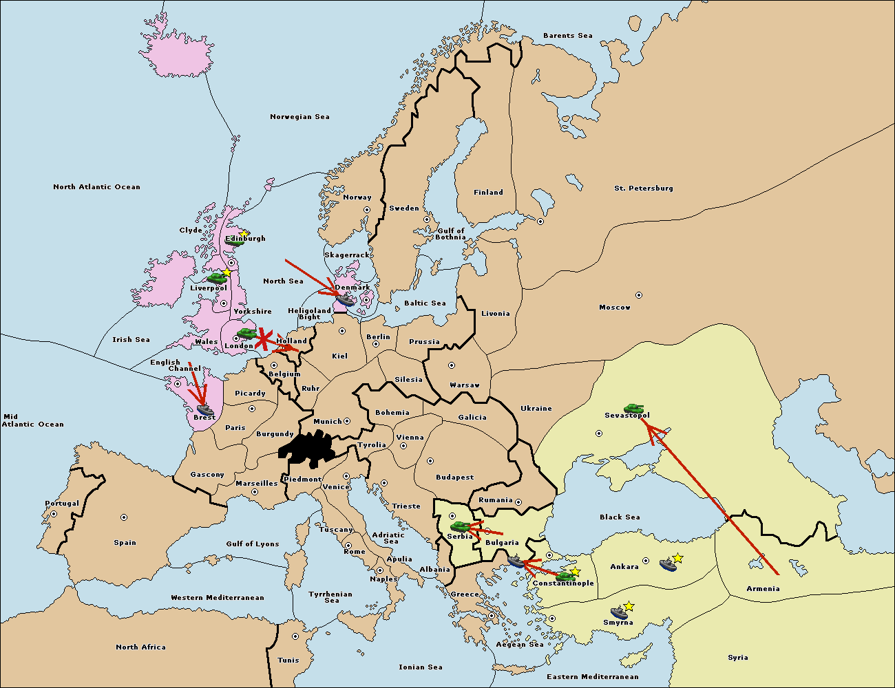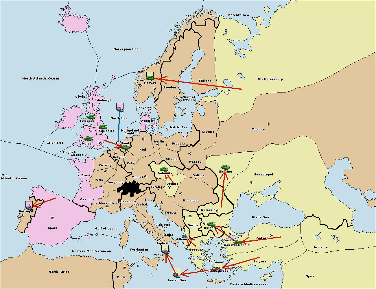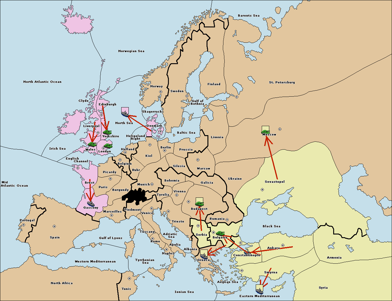 The fleet at Bulgaria (South Coast) move to Greece.