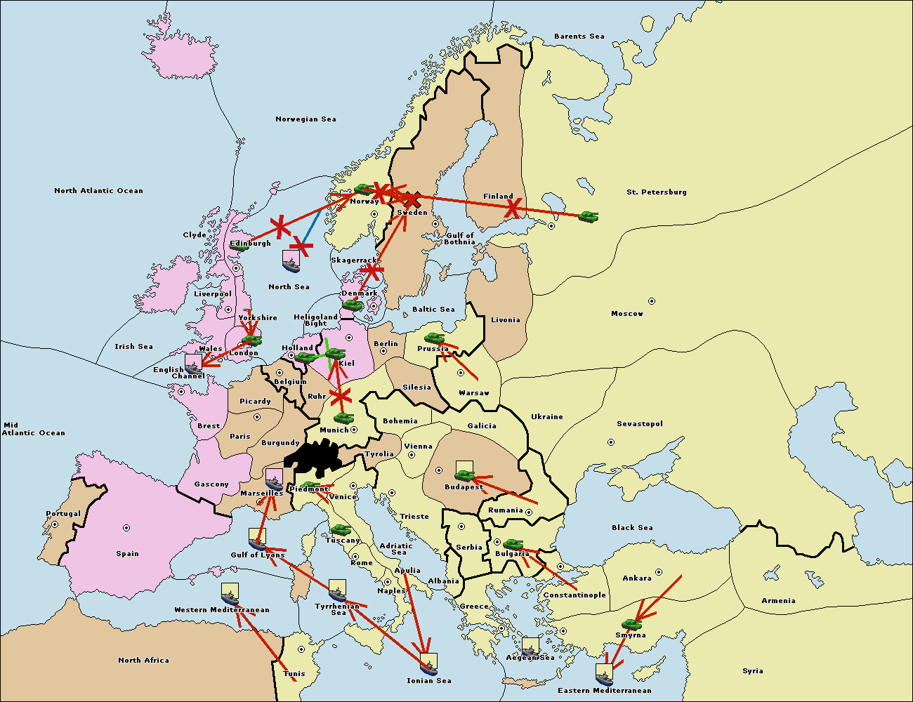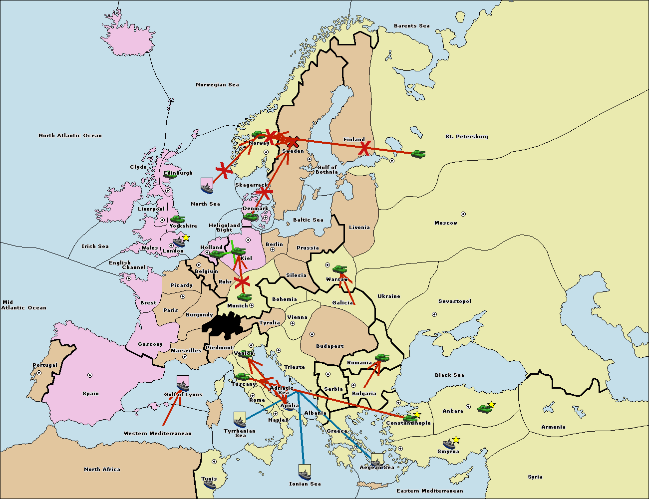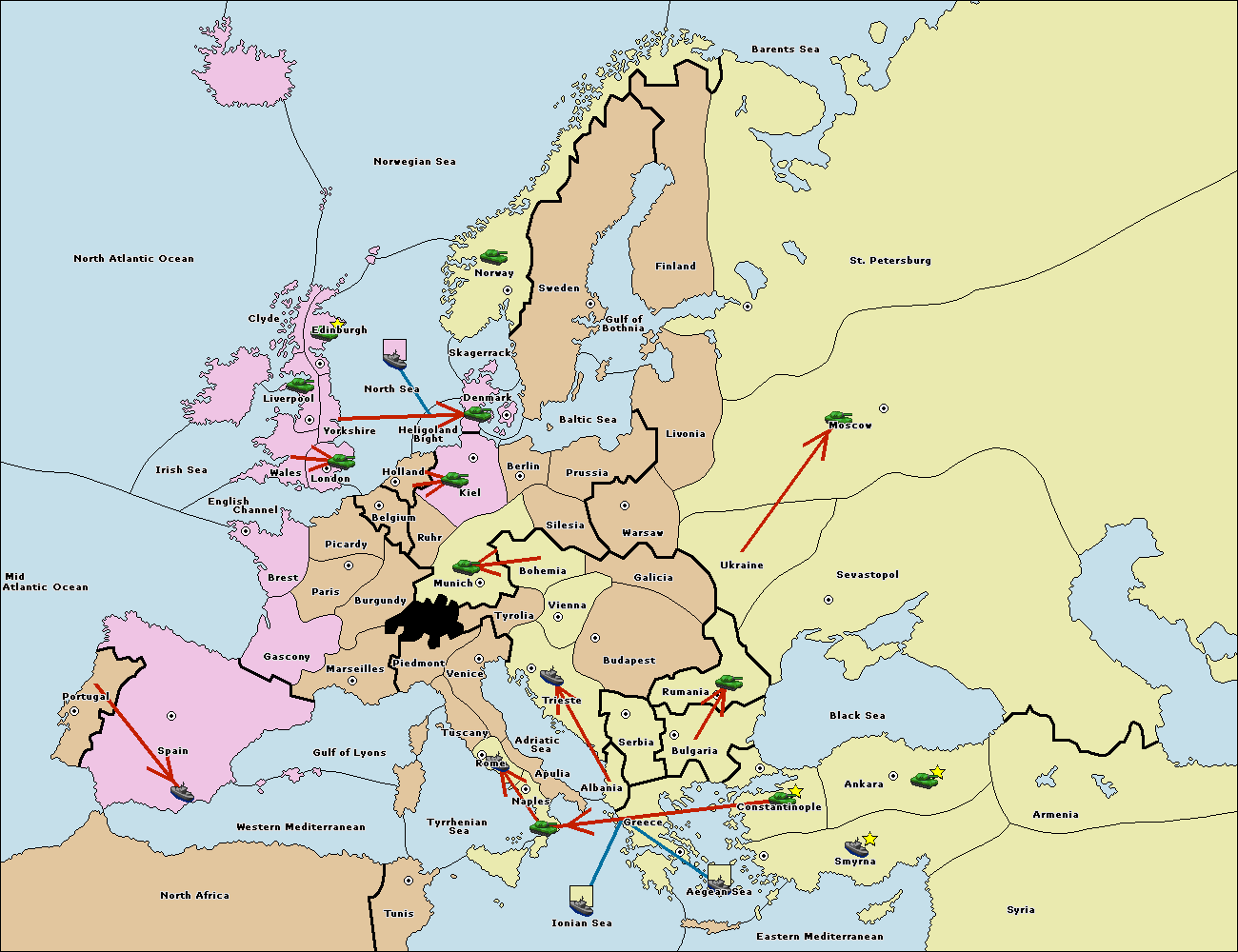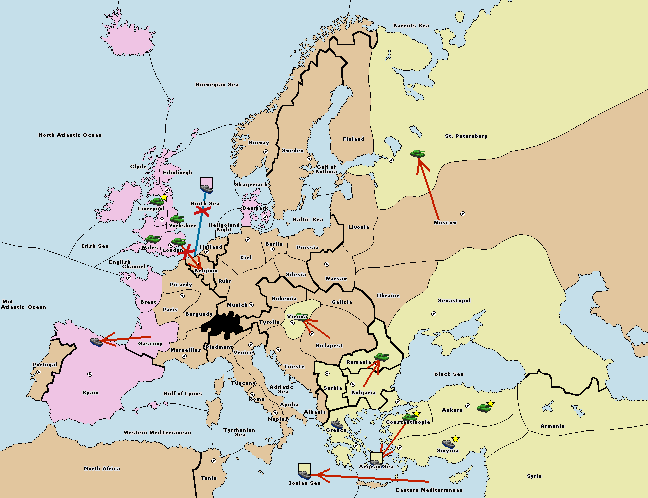 The fleet at Bulgaria (South Coast) move to Greece.