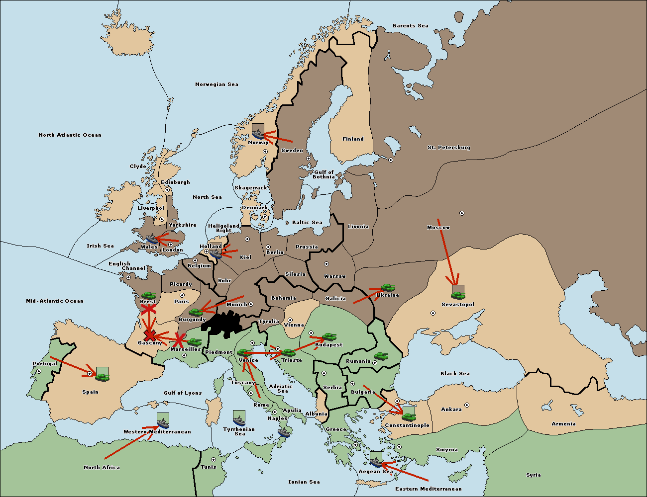 The army at Brest support move to Gascony from Burgundy.