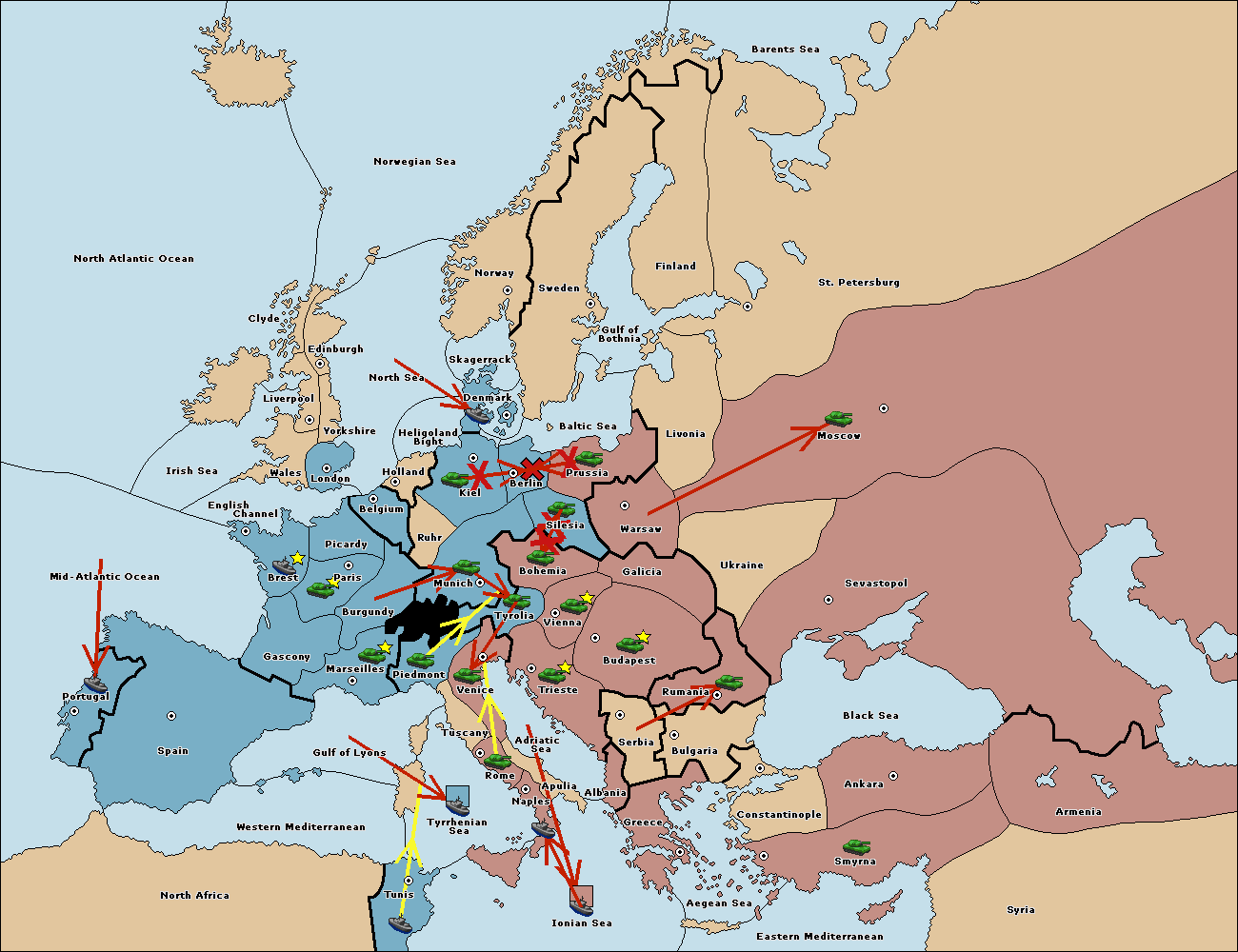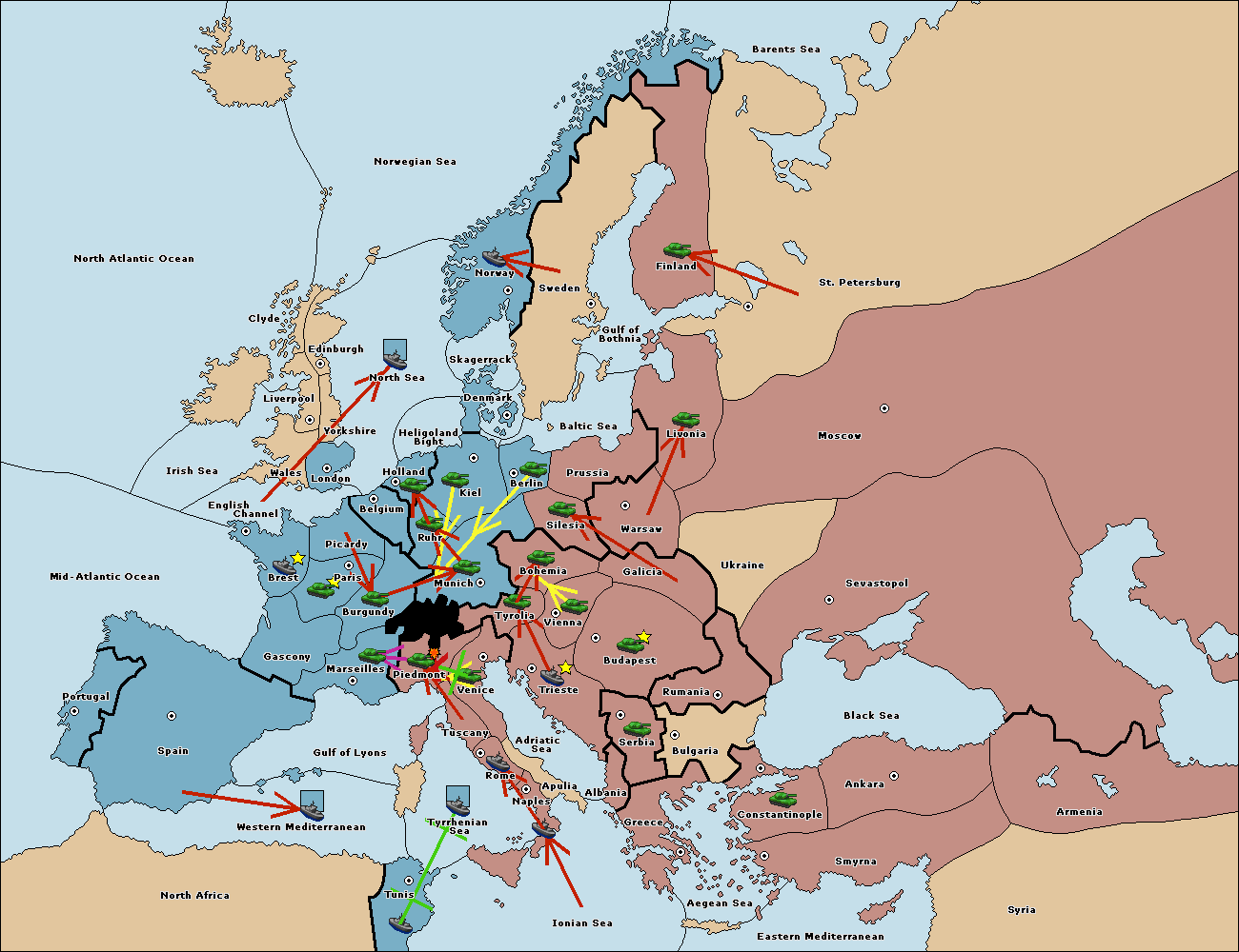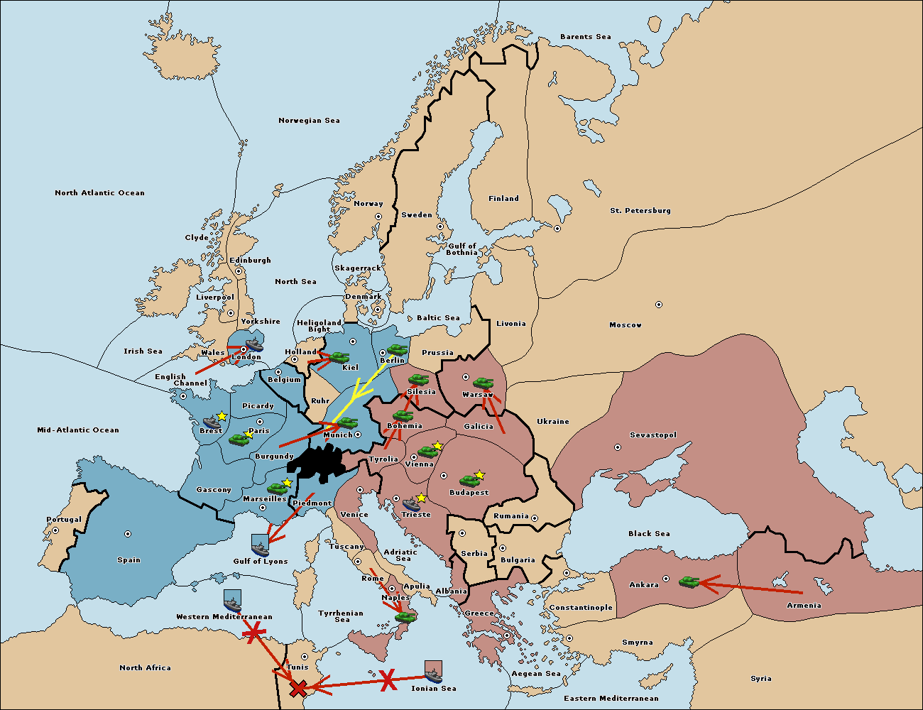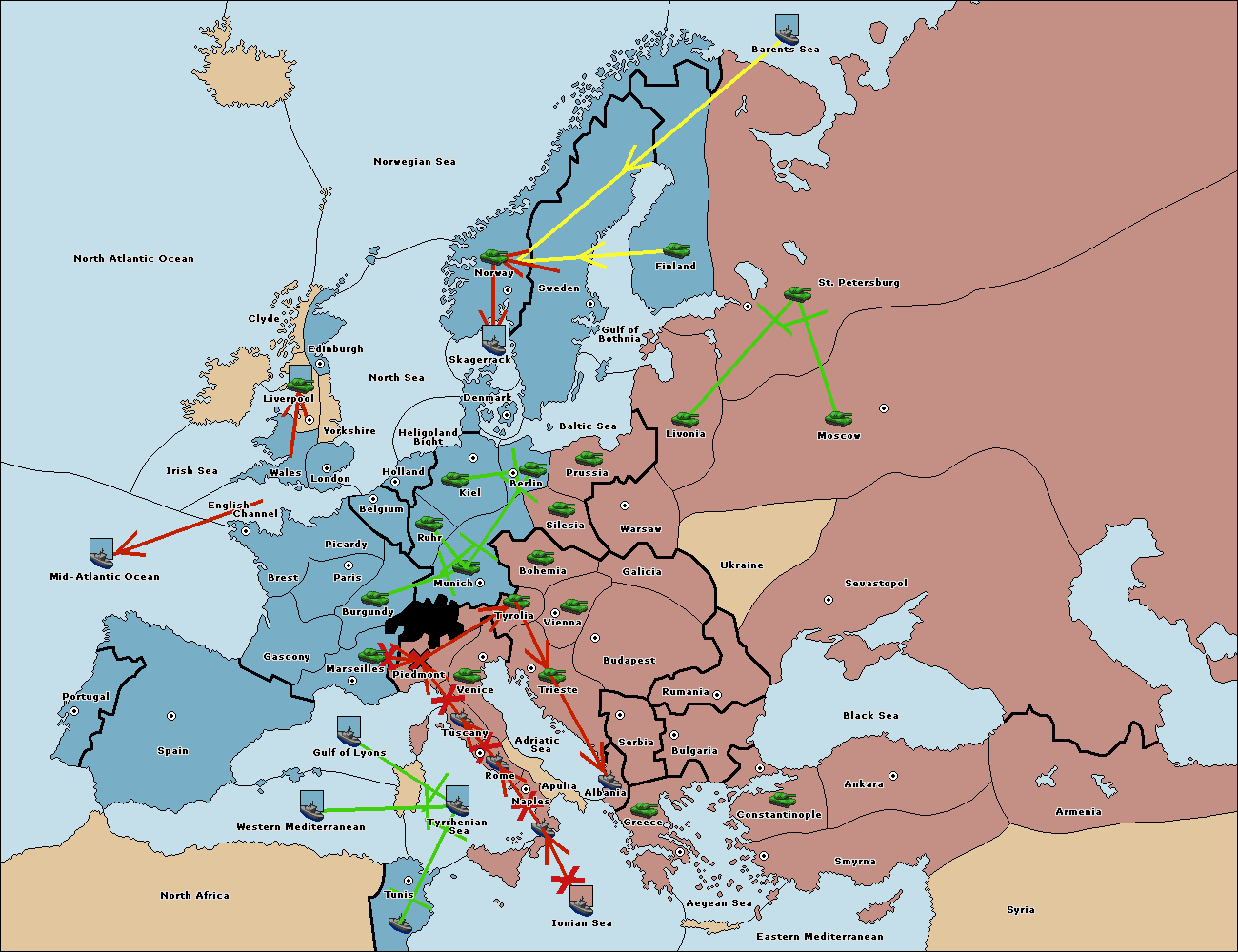 The fleet at Ionian Sea support move to Tunis from Tyrrhenian Sea.