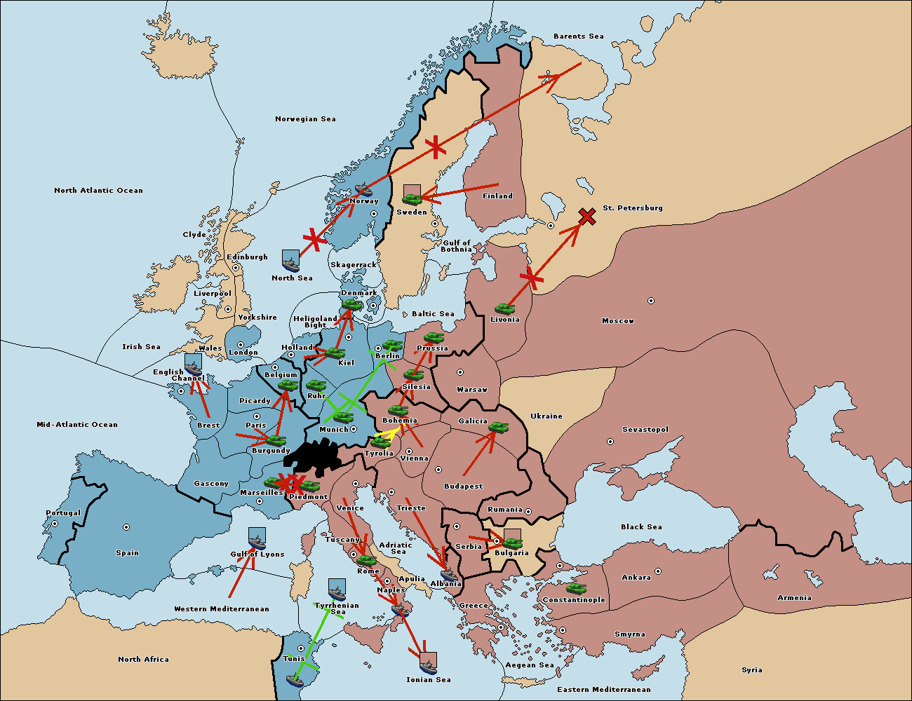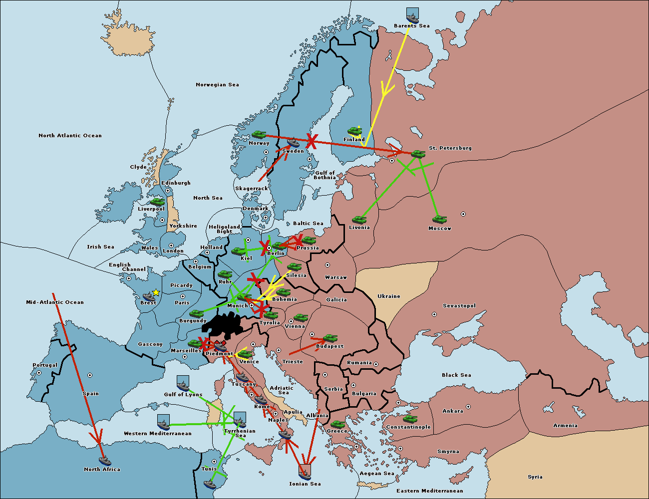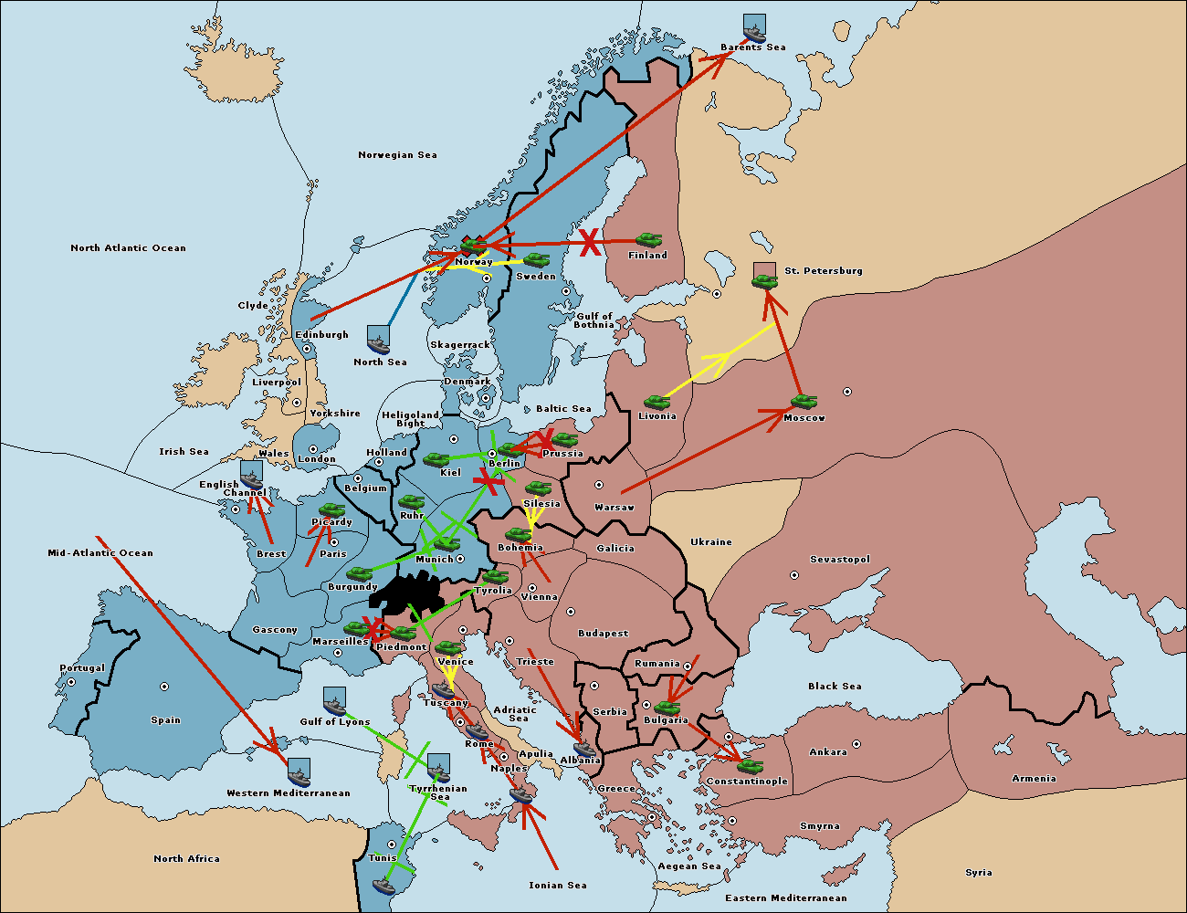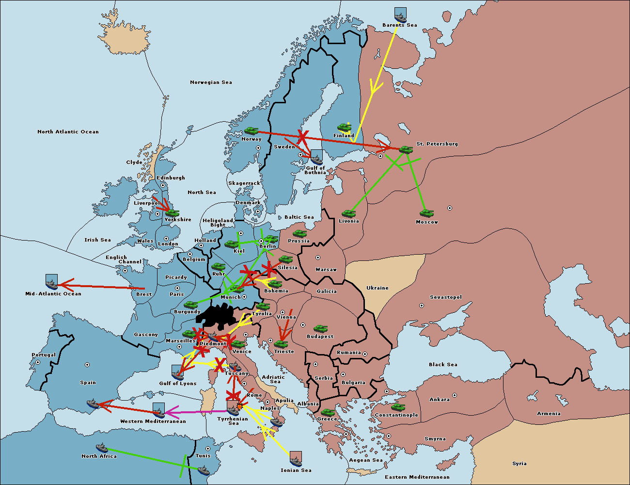 The fleet at Ionian Sea support move to Tunis from Tyrrhenian Sea.