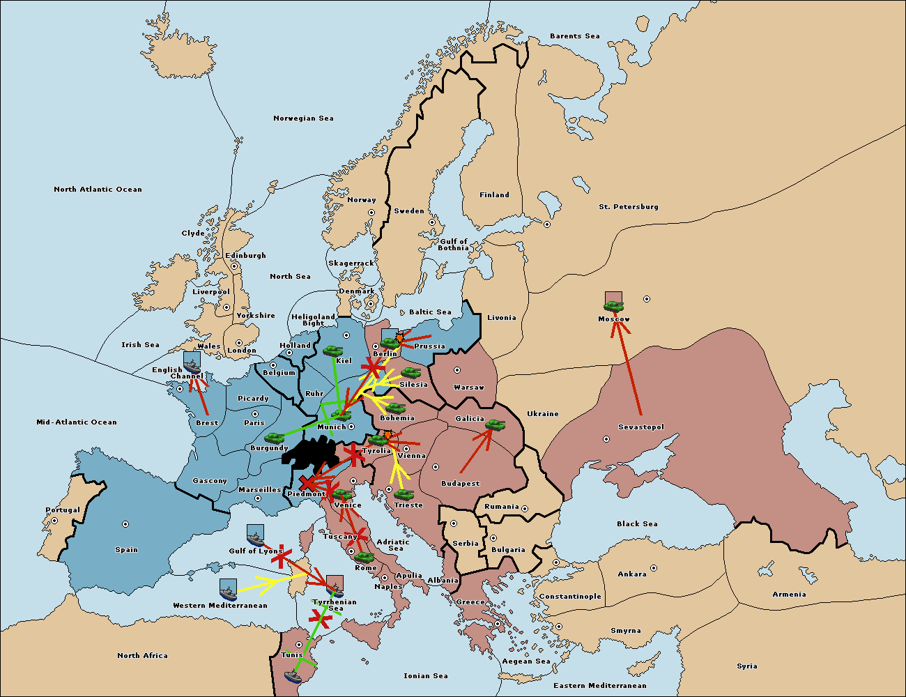 The army at Tyrolia support move to Munich from Silesia.