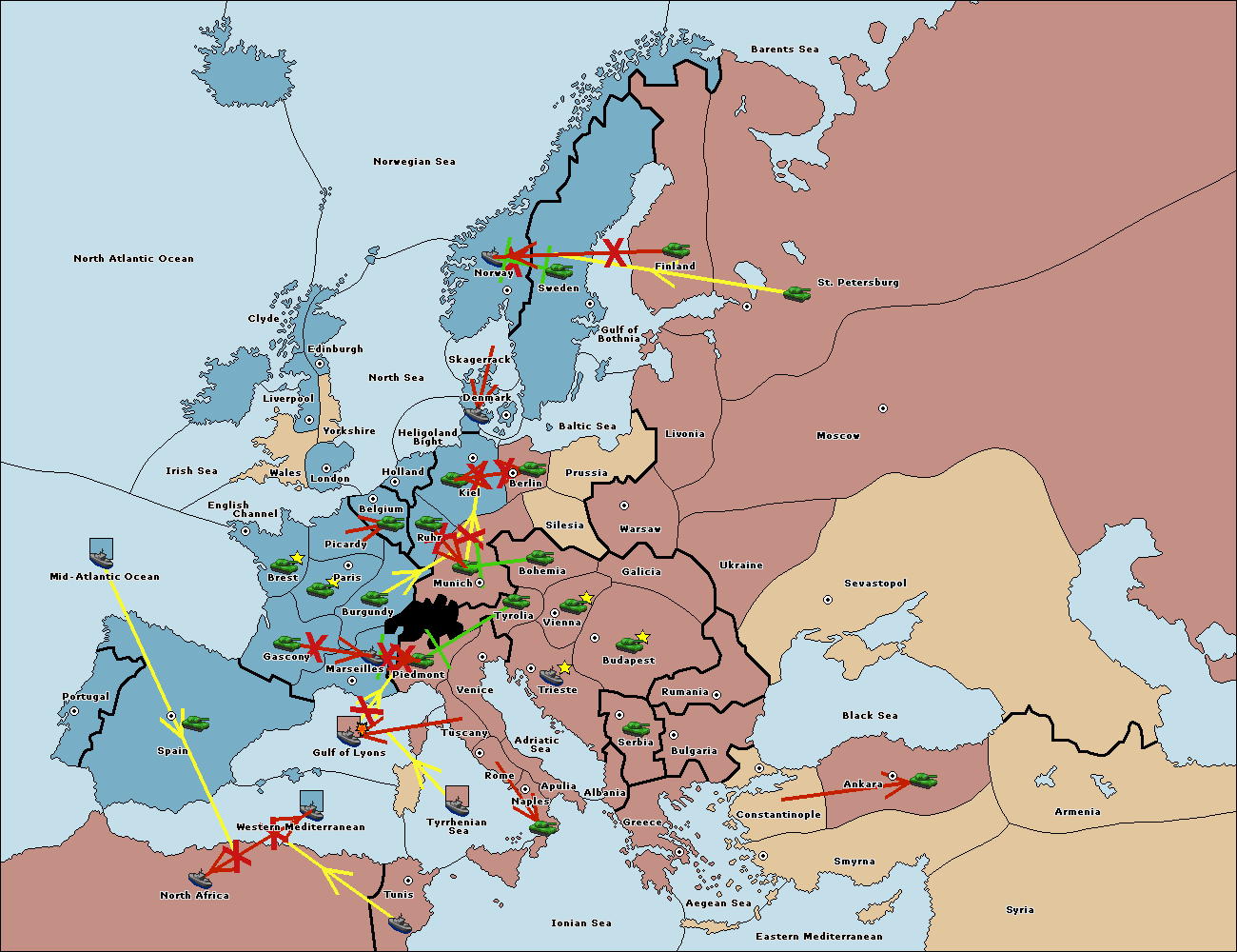 The fleet at Spain (South Coast) support hold to Western Mediterranean.
