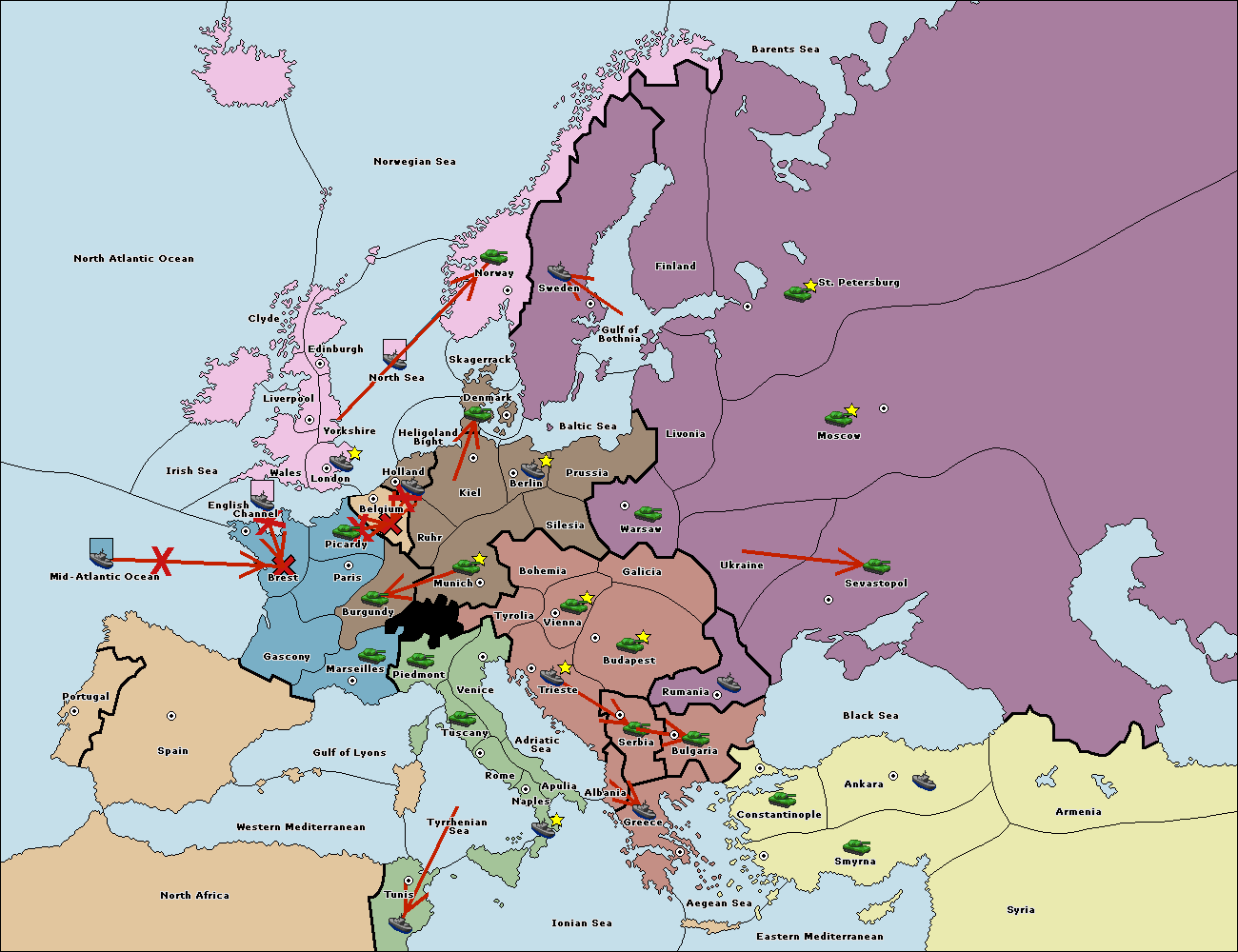 The fleet at Mid-Atlantic Ocean move to Brest.
