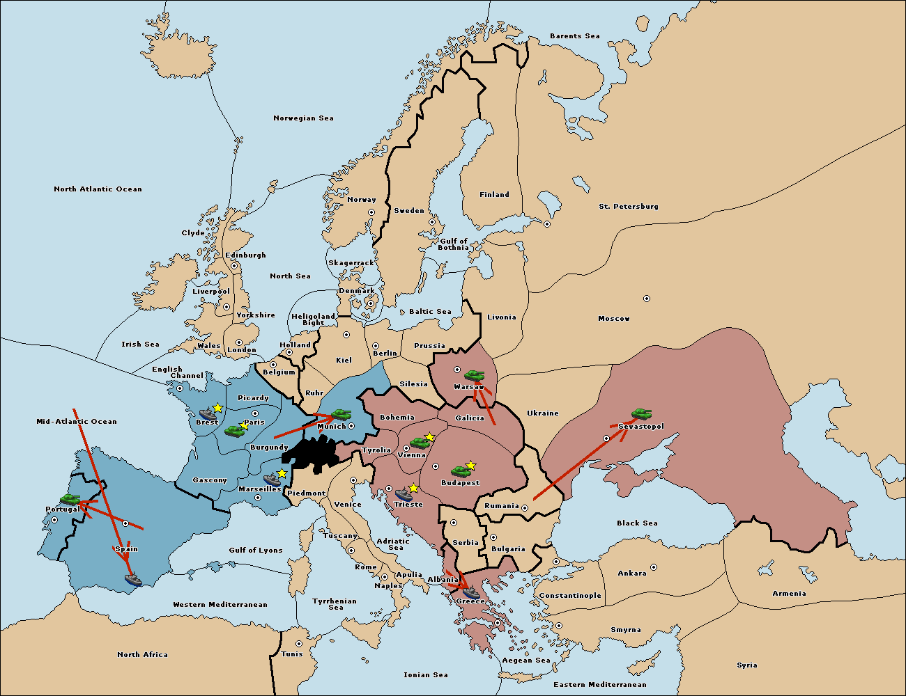 The fleet at Mid-Atlantic Ocean move to Western Mediterranean.