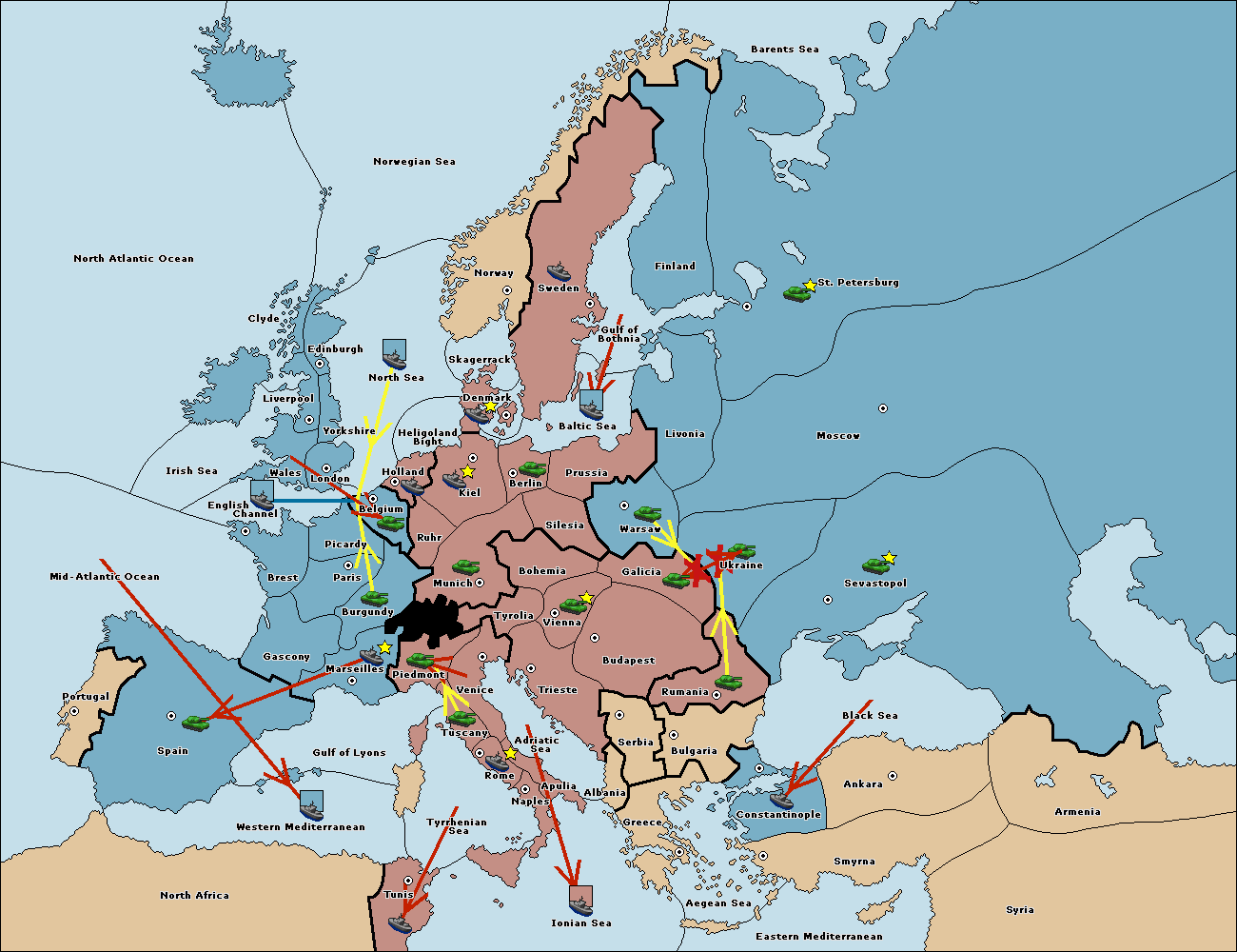 The fleet at Bulgaria (South Coast) move to Constantinople.