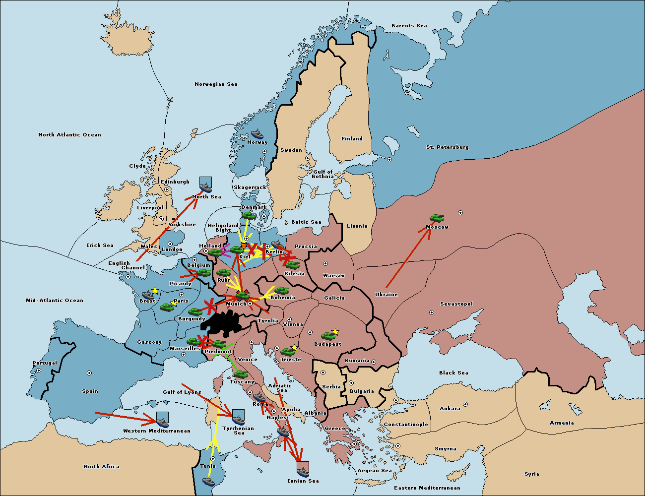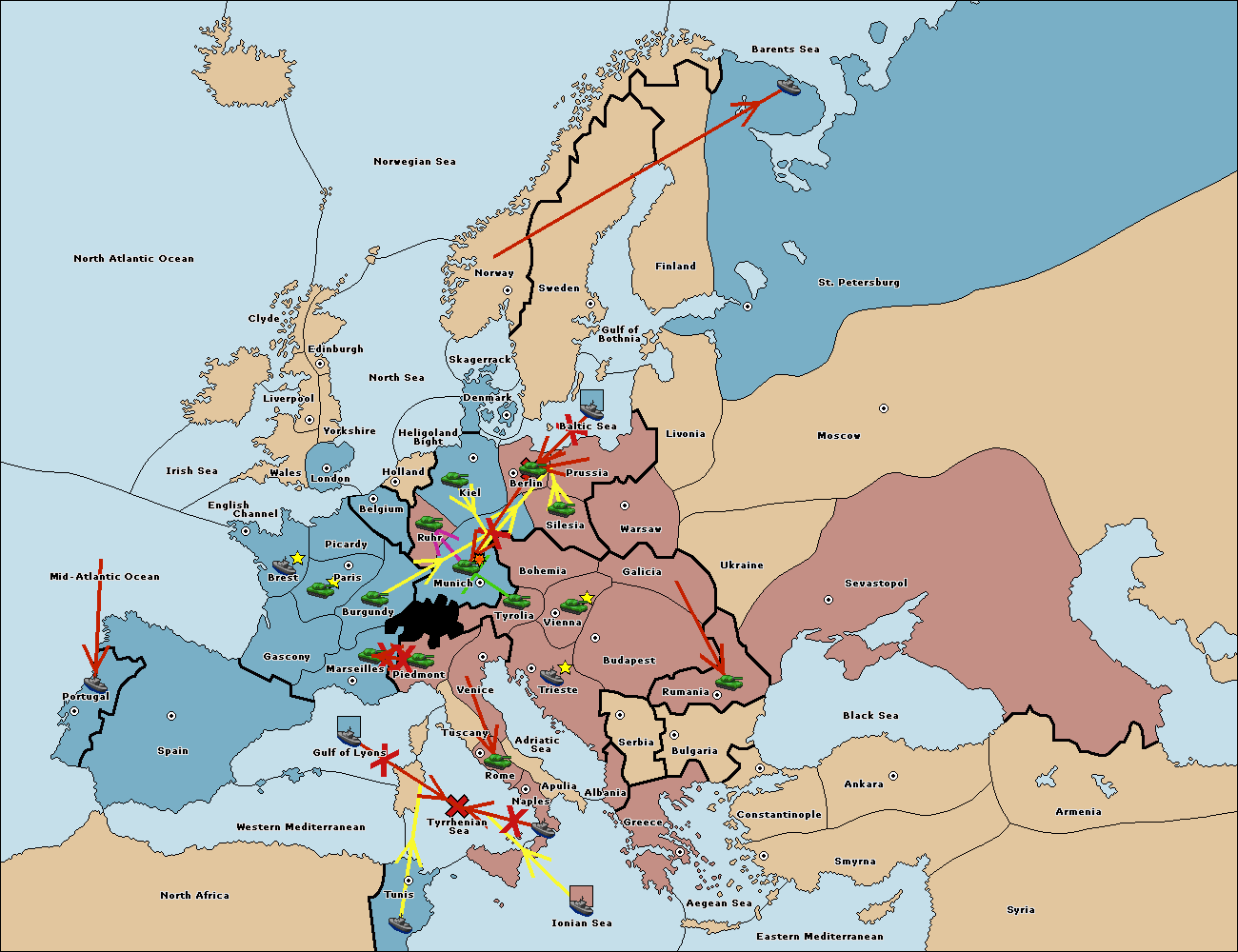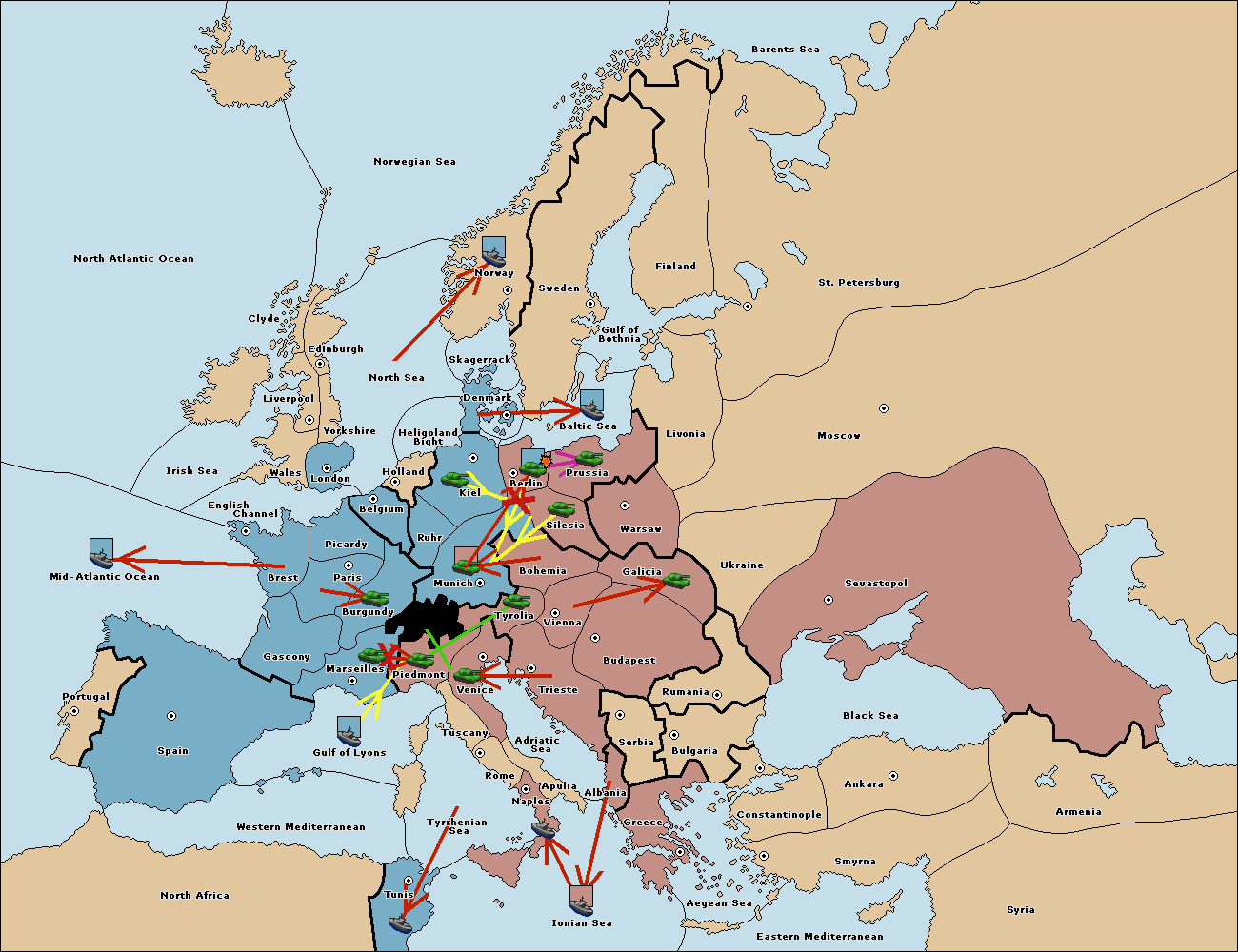 The fleet at Berlin support move to Kiel from Munich.