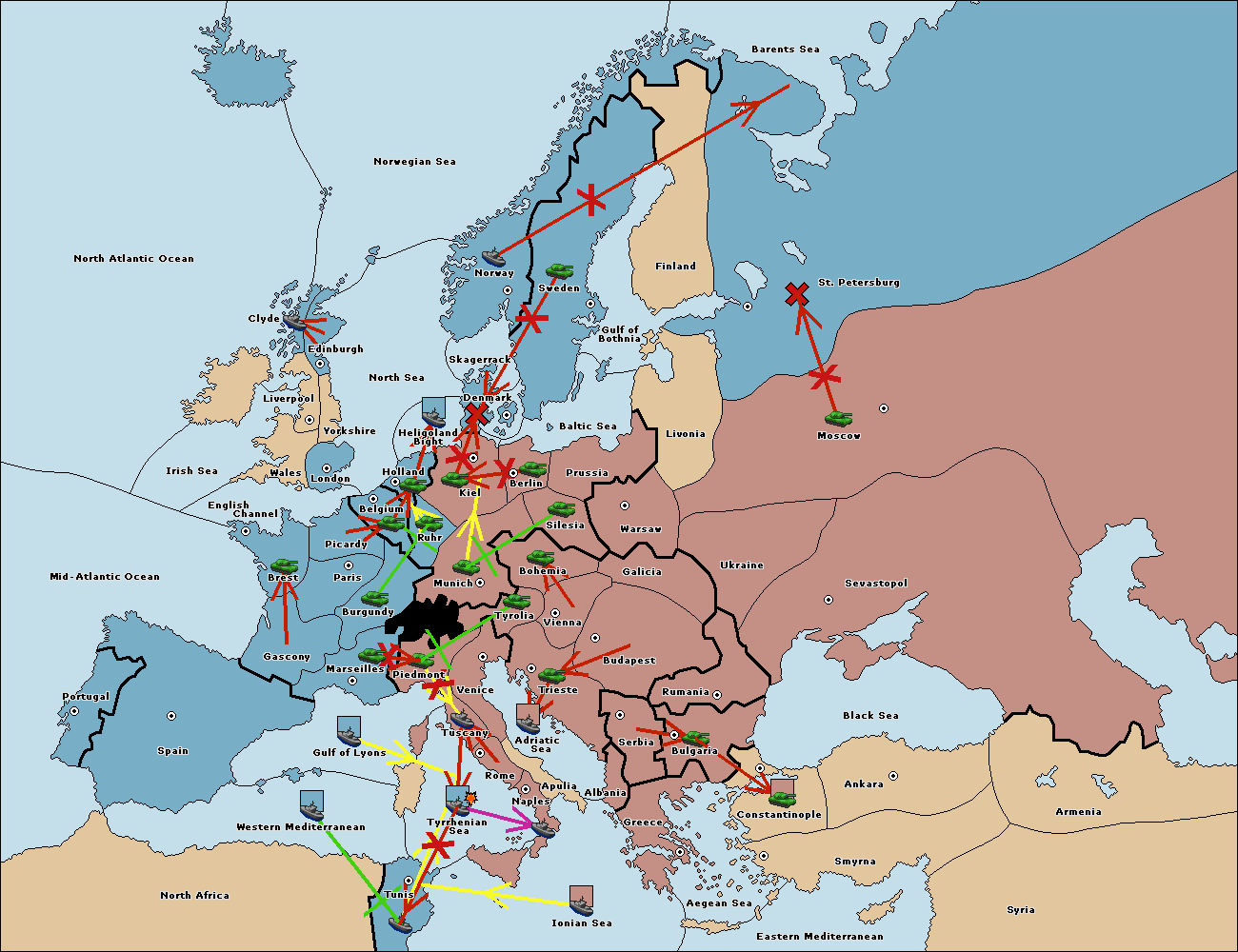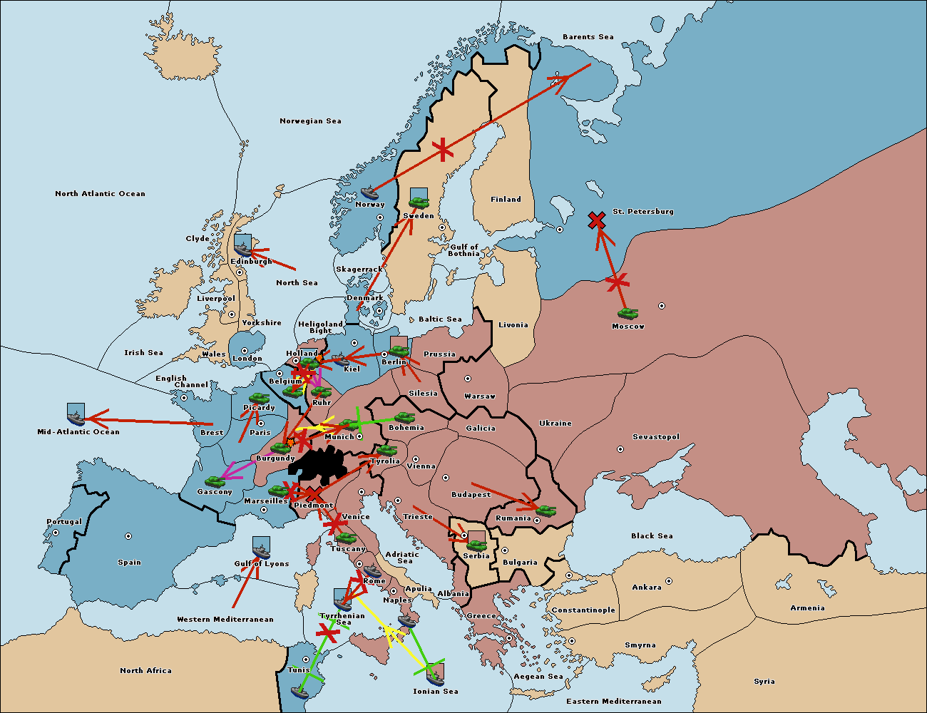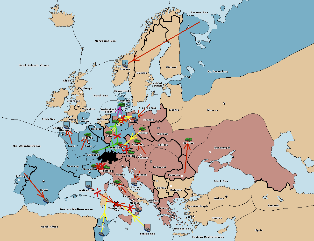 The fleet at Berlin support move to Kiel from Munich.