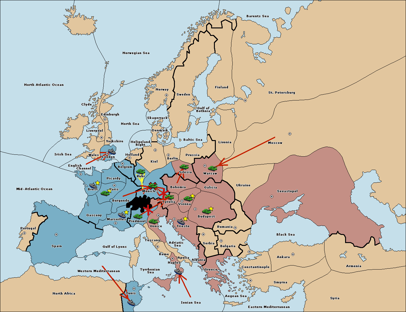 The fleet at Spain (South Coast) move to Western Mediterranean.
