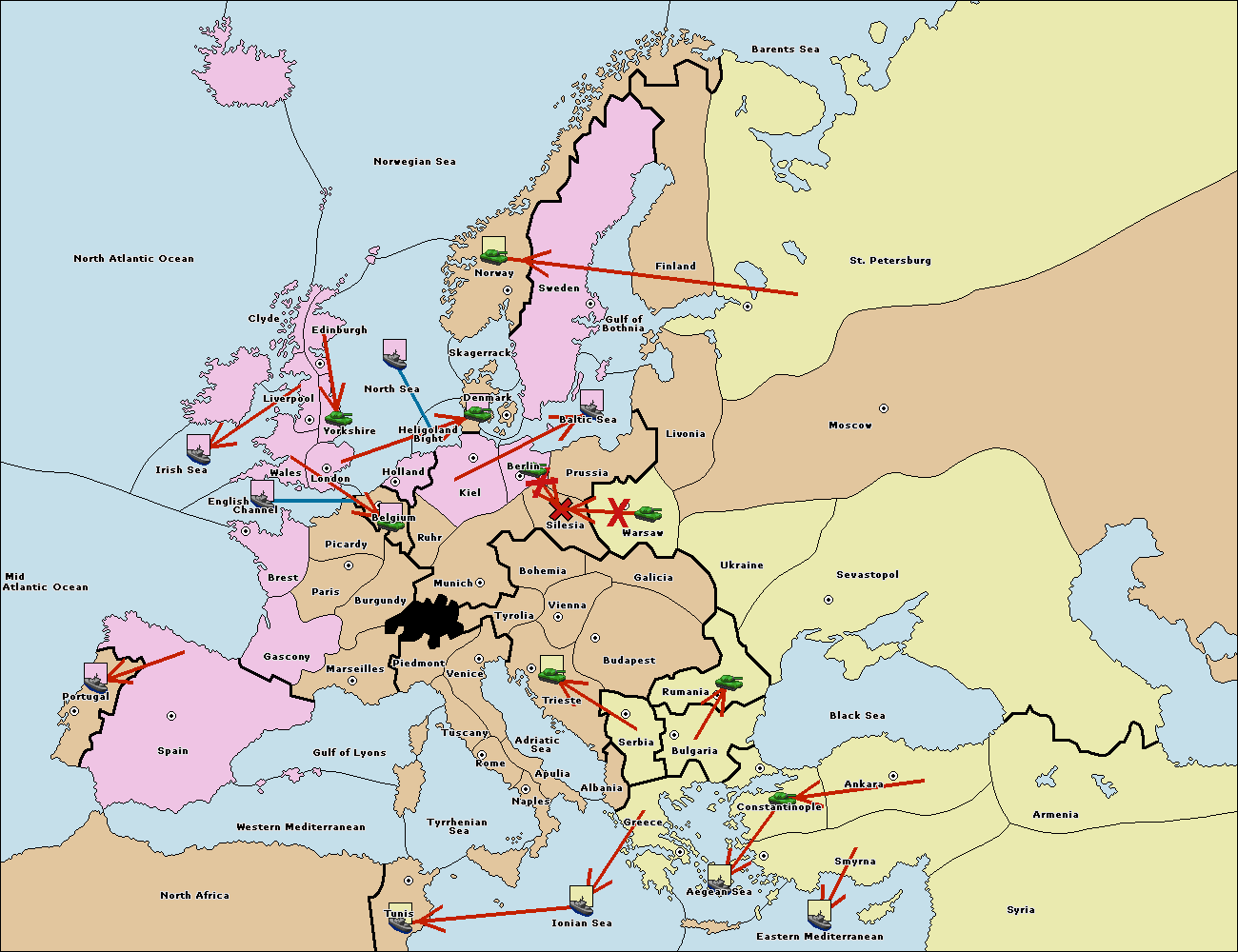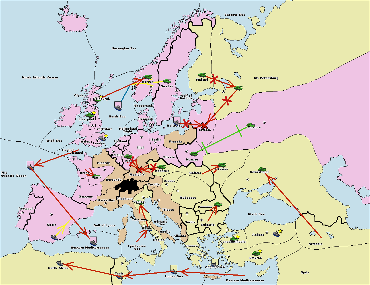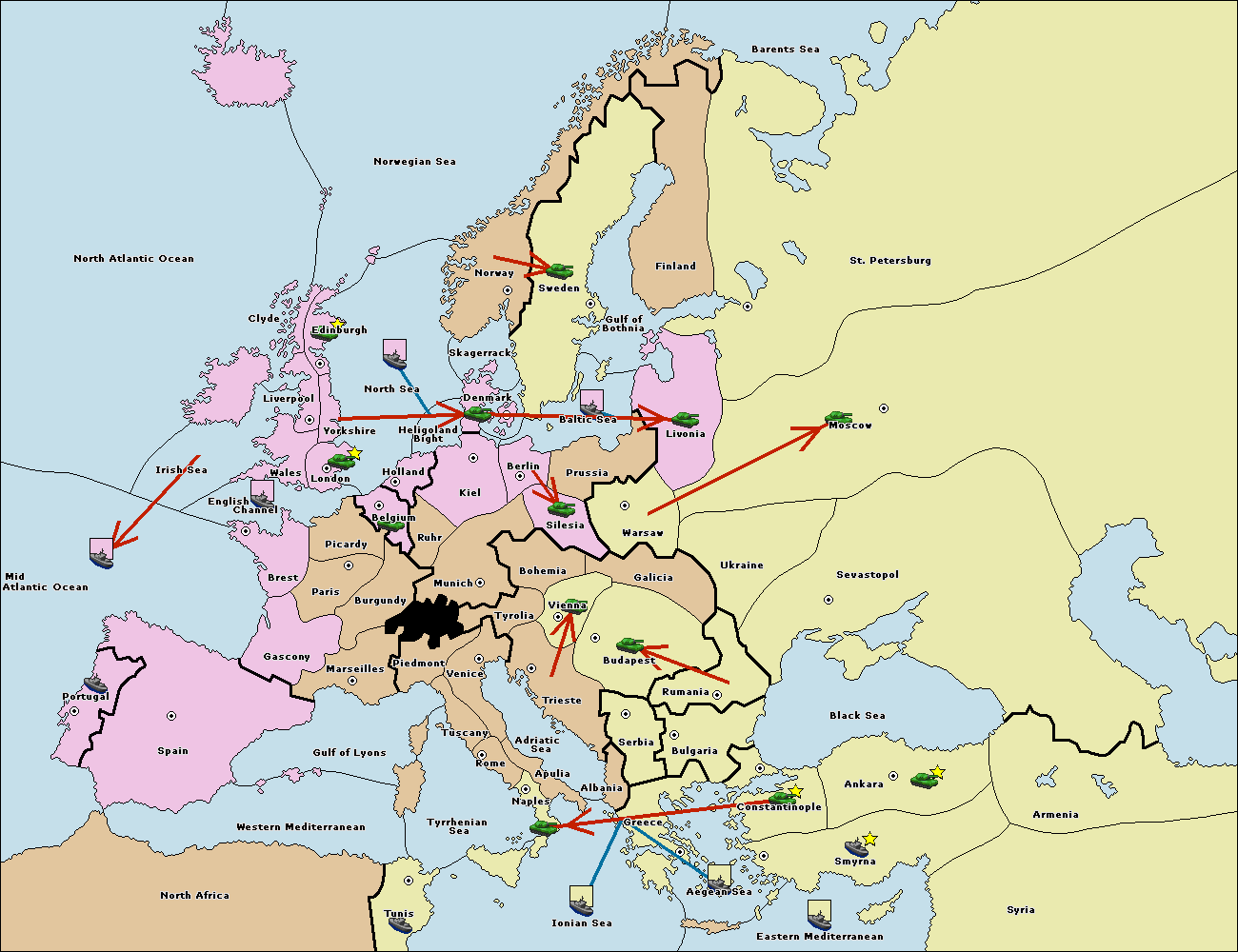 The fleet at Bulgaria (South Coast) move to Greece.