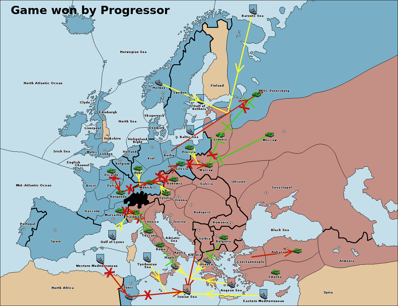 The fleet at Bulgaria (South Coast) move to Aegean Sea.