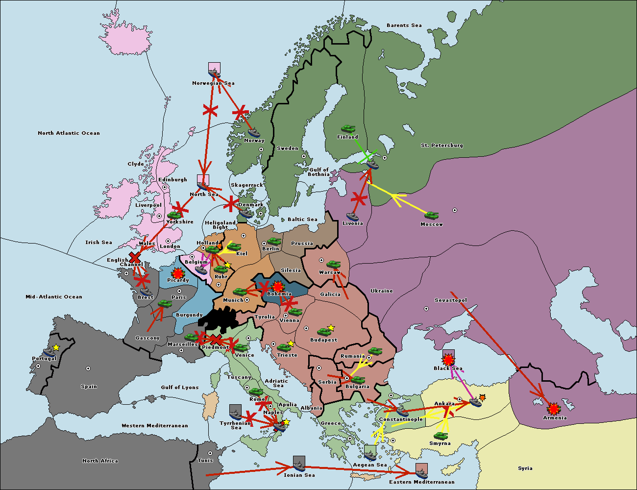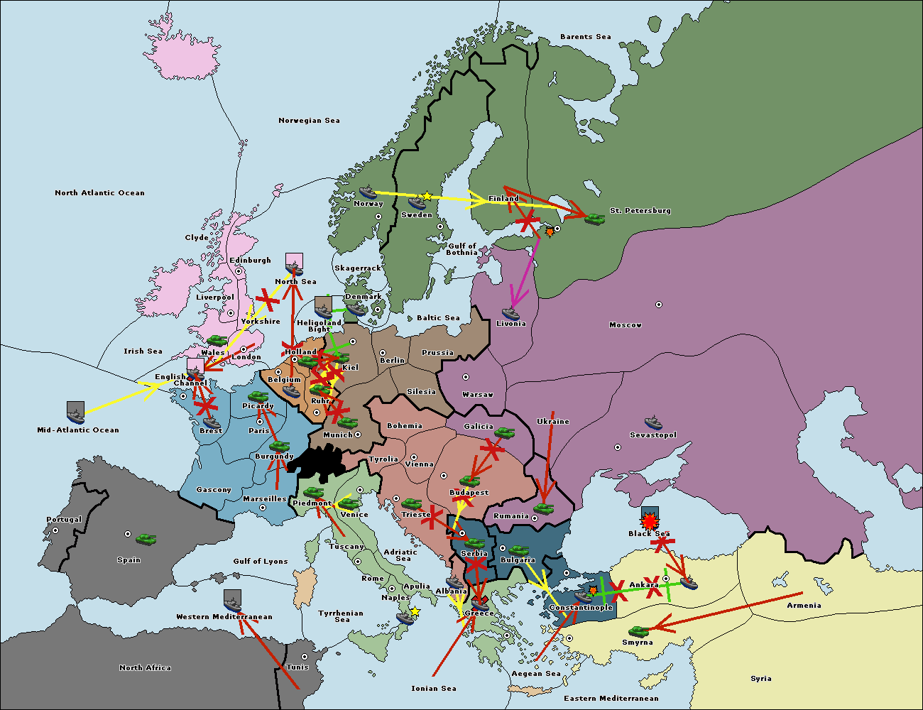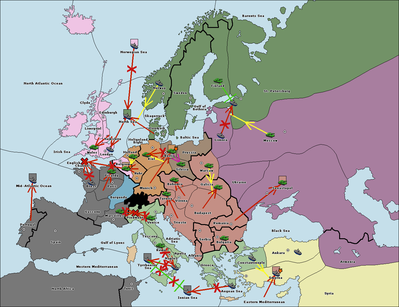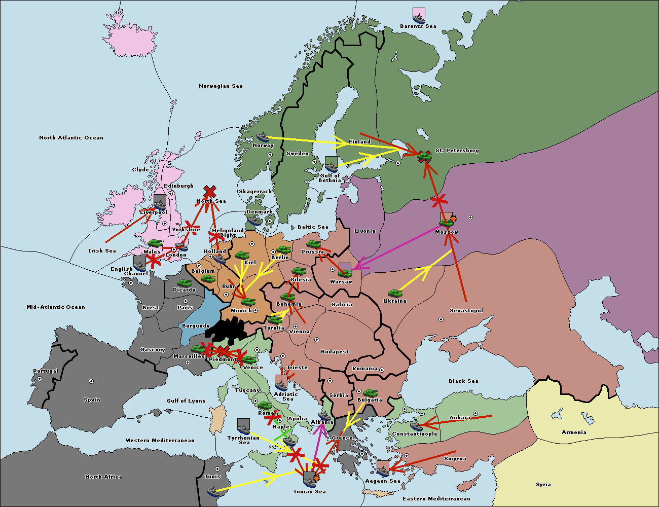 The fleet at Bulgaria (South Coast) move to Aegean Sea.