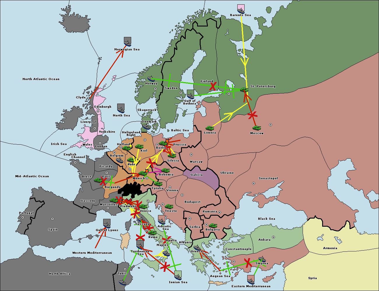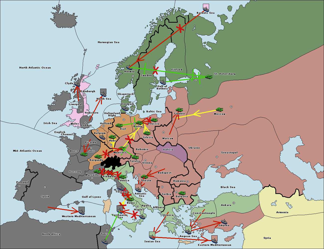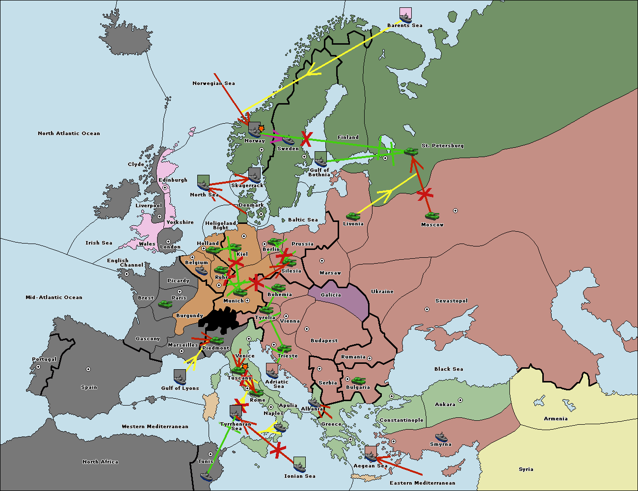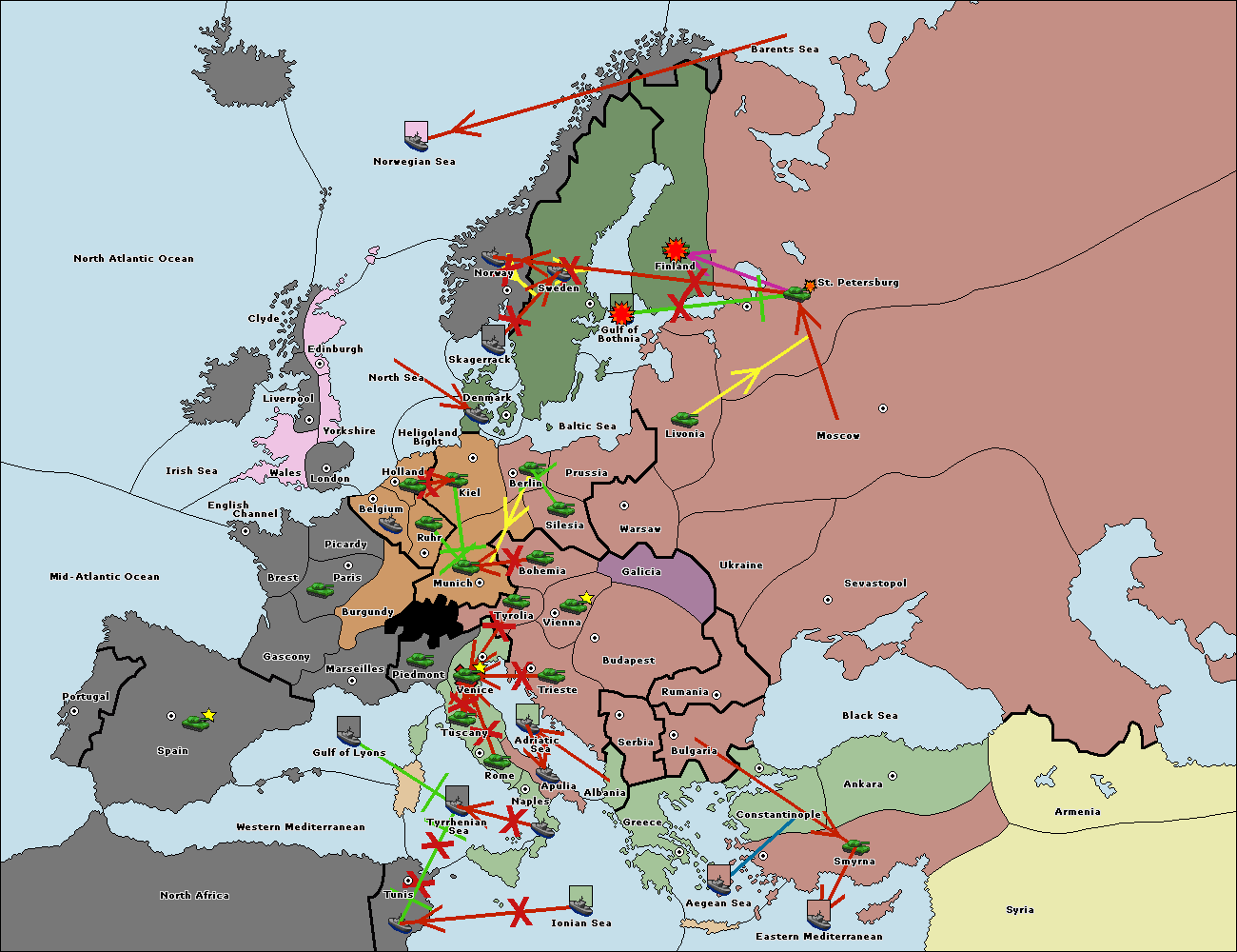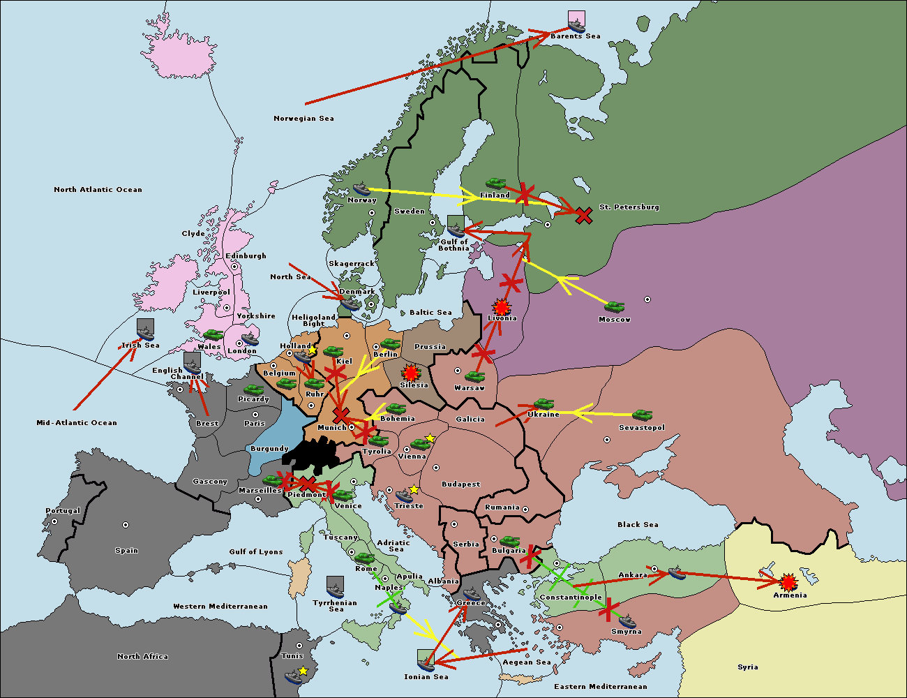 The fleet at Bulgaria (South Coast) move to Aegean Sea.