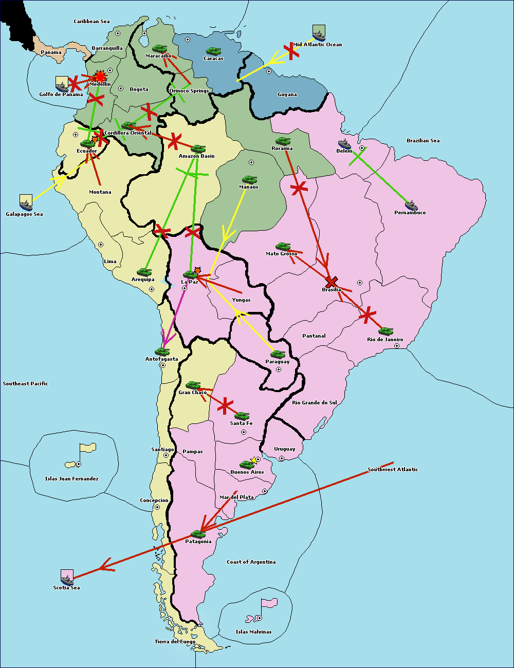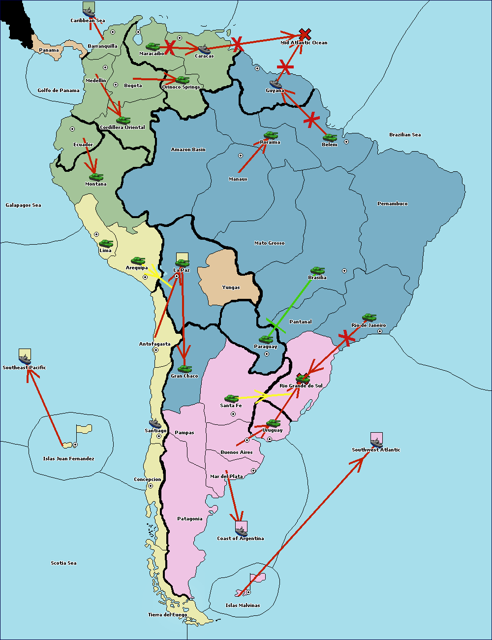 The army at Orinoco Springs support hold to Amazon Basin.