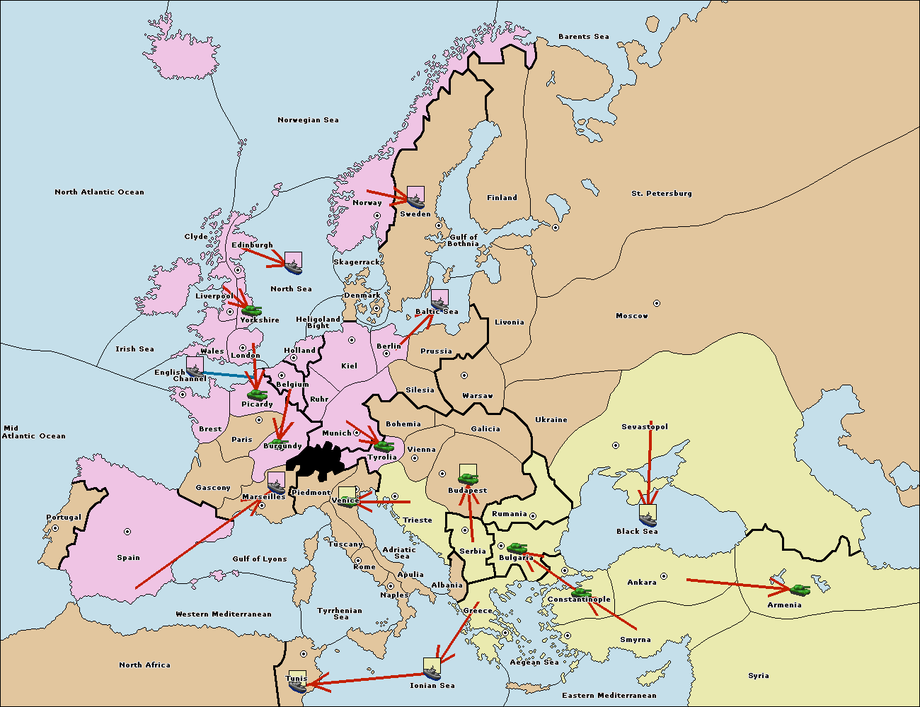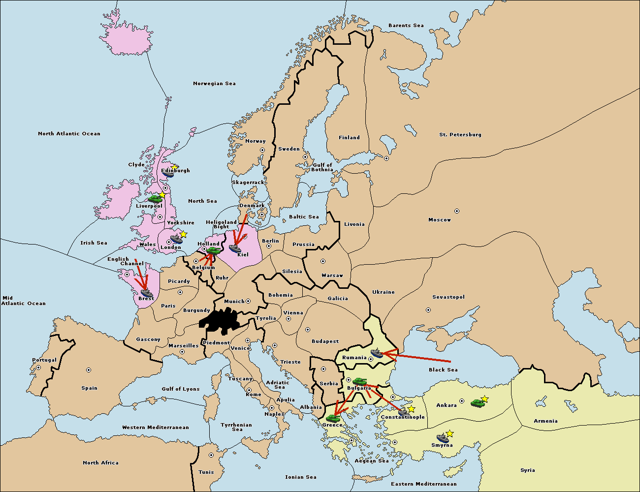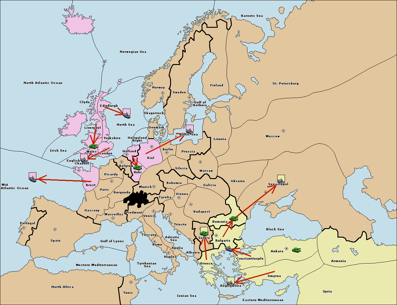The fleet at Bulgaria (South Coast) move to Aegean Sea.
