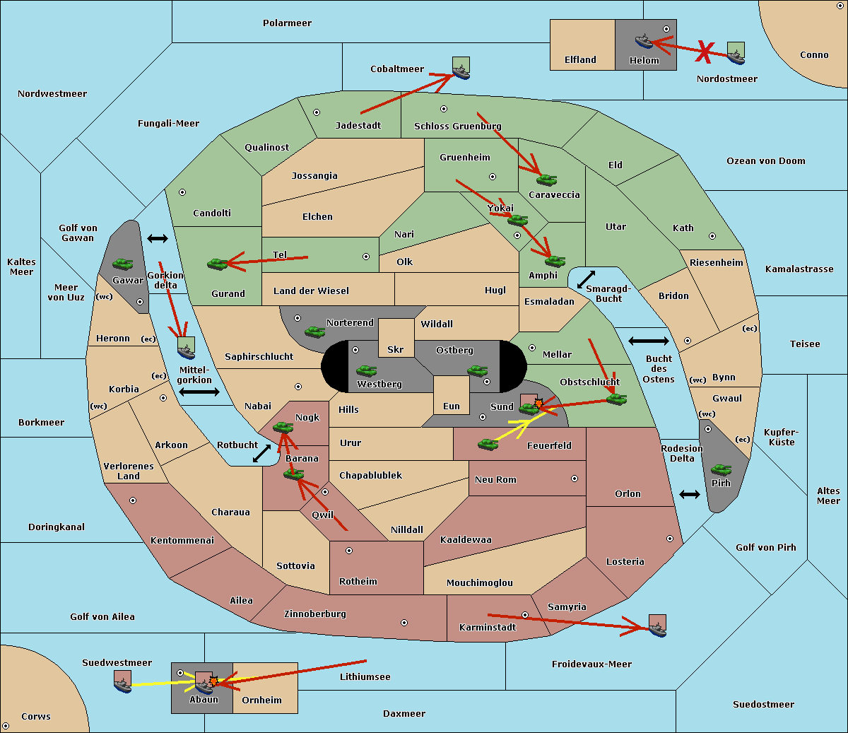 The fleet at Golf von Ailea move to Suedwestmeer.