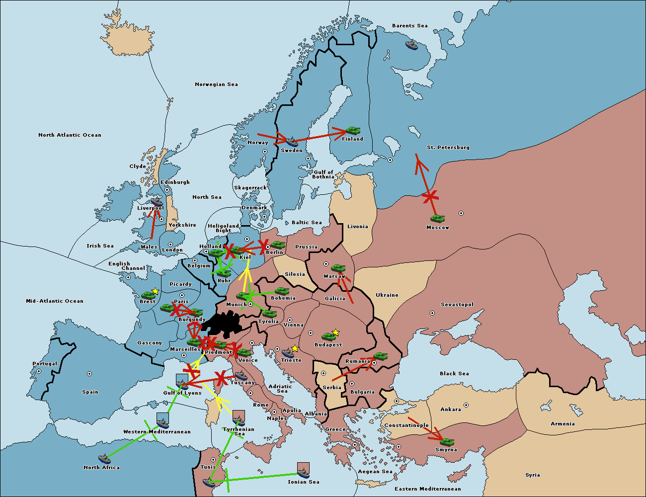 The fleet at Tyrrhenian Sea support hold to Tunis.