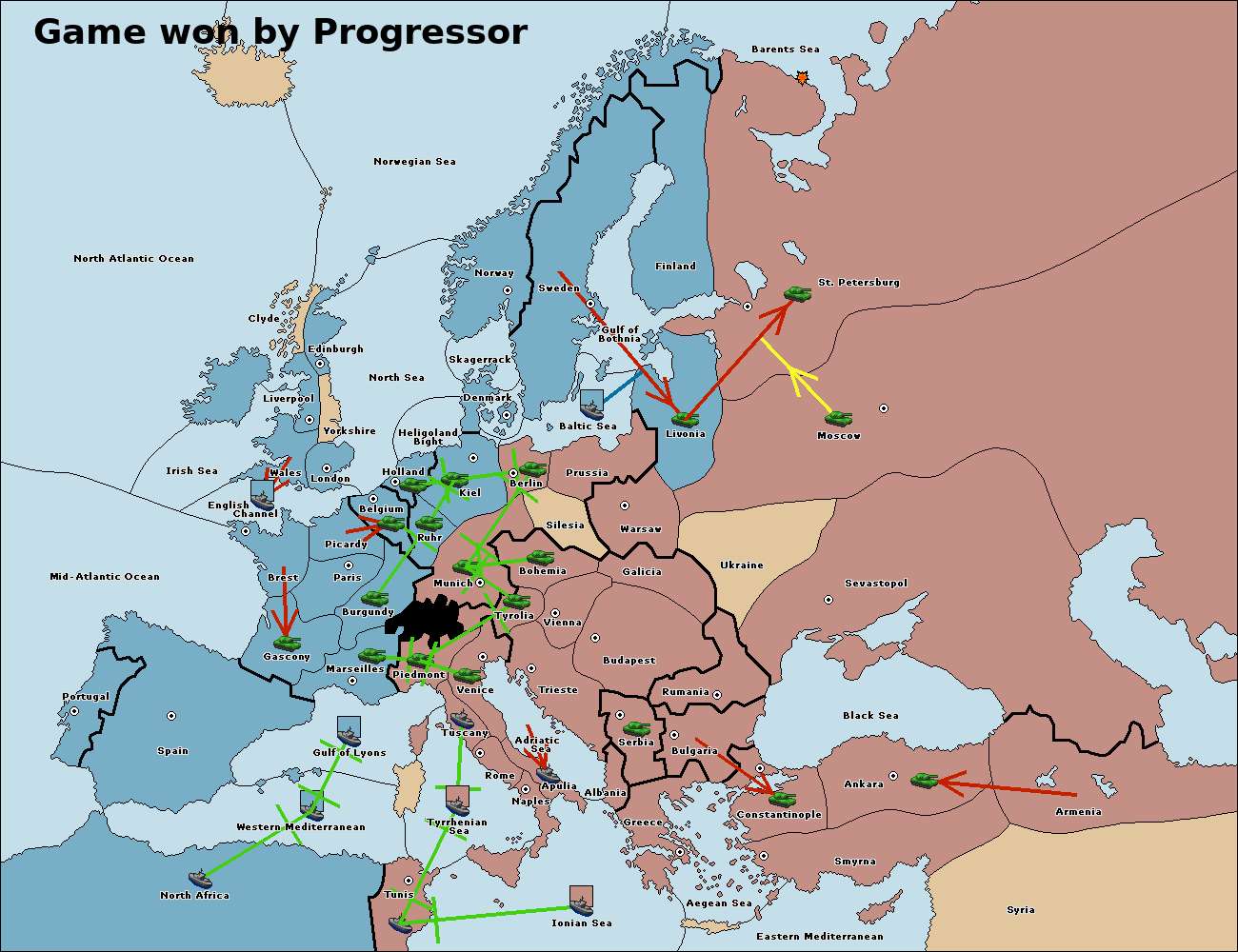 The fleet at Tunis support move to Tyrrhenian Sea from Ionian Sea.