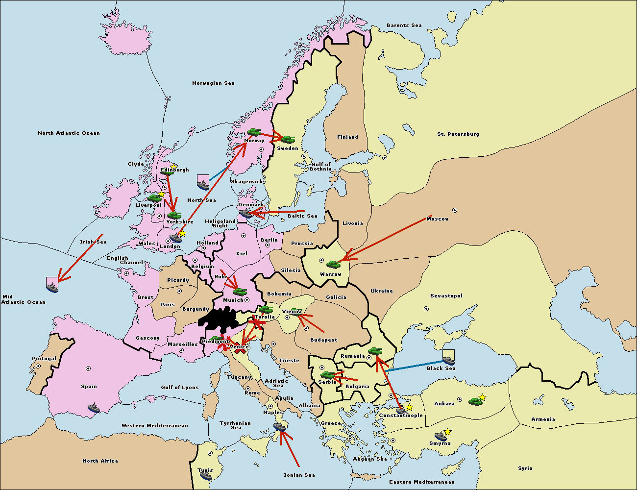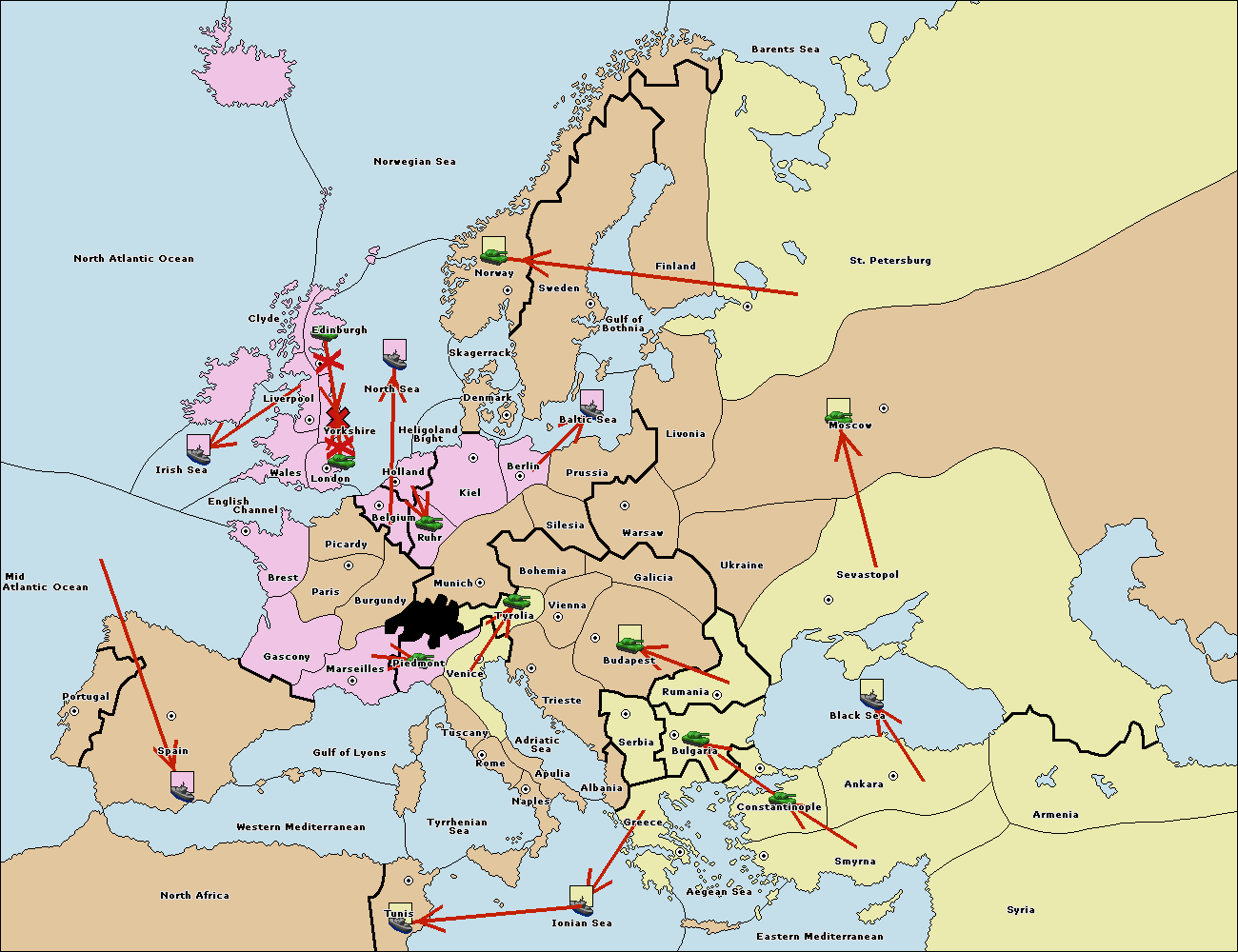 The fleet at Bulgaria (South Coast) move to Greece.