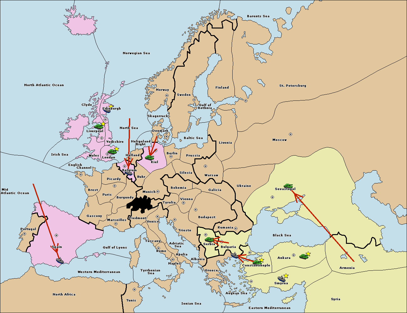 The fleet at Bulgaria (South Coast) move to Greece.