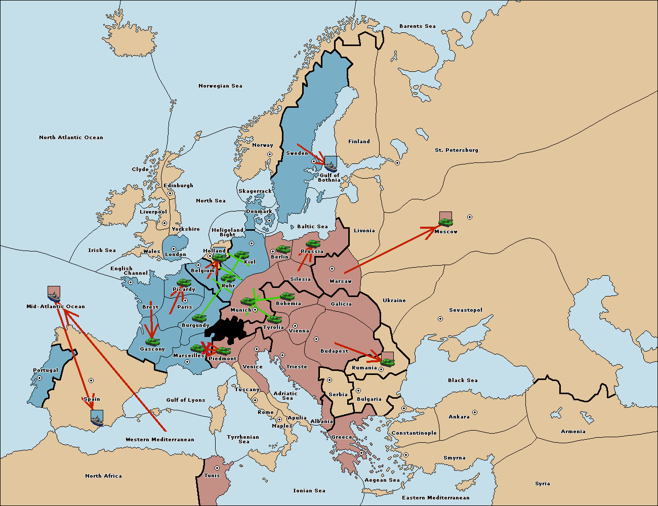 The army at Tyrolia move to Munich.