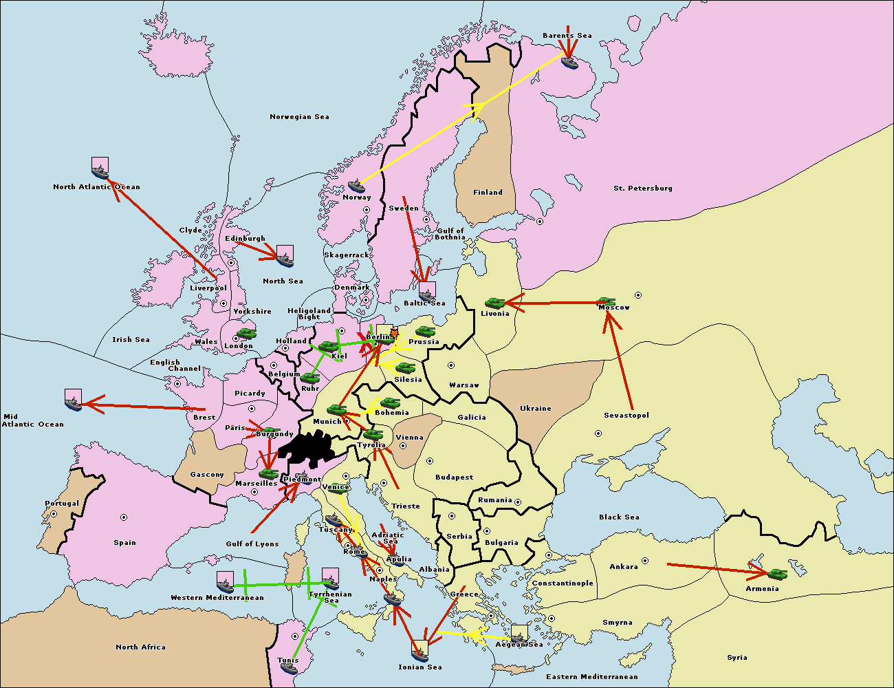 The fleet at Tyrrhenian Sea support move to Naples from Ionian Sea.
