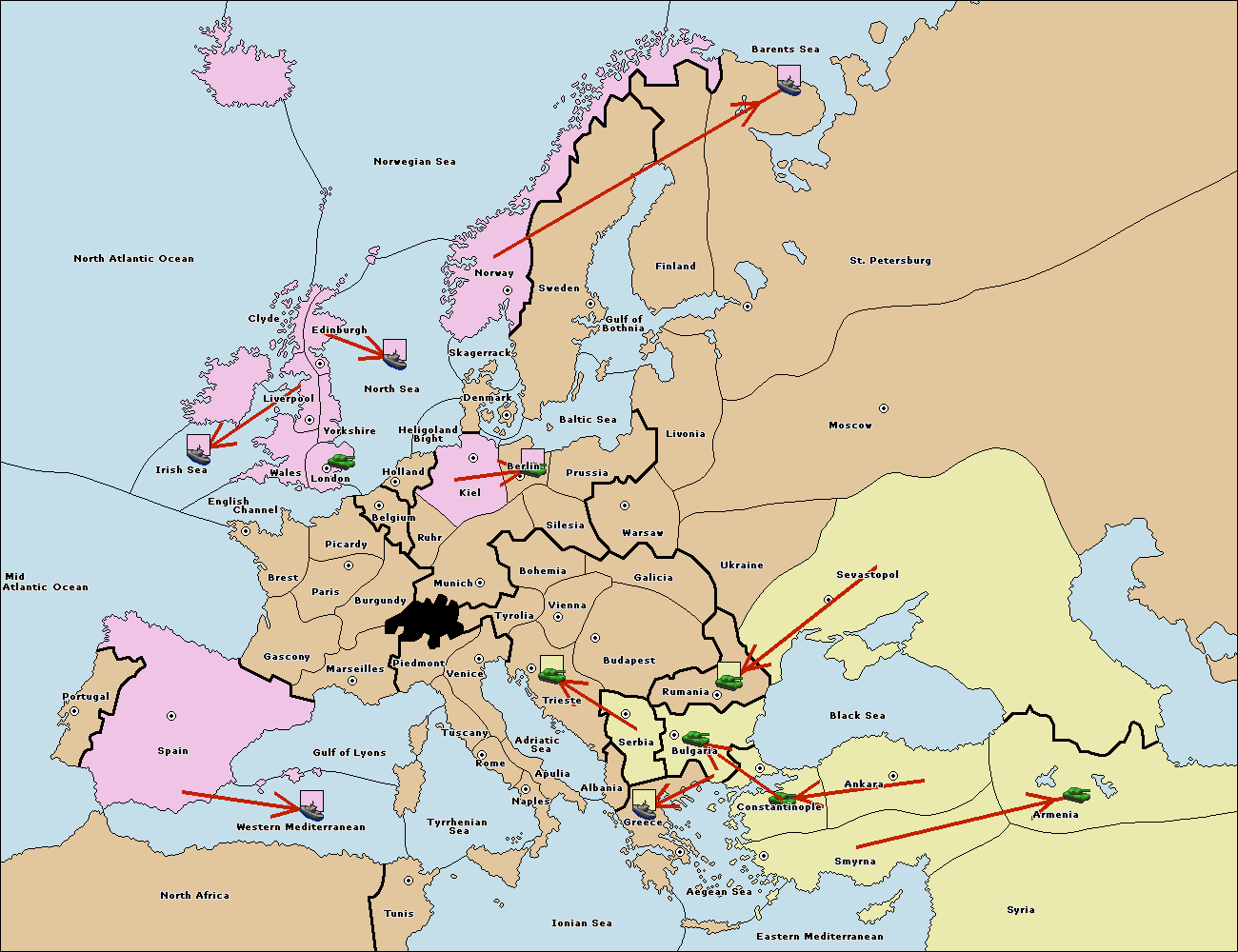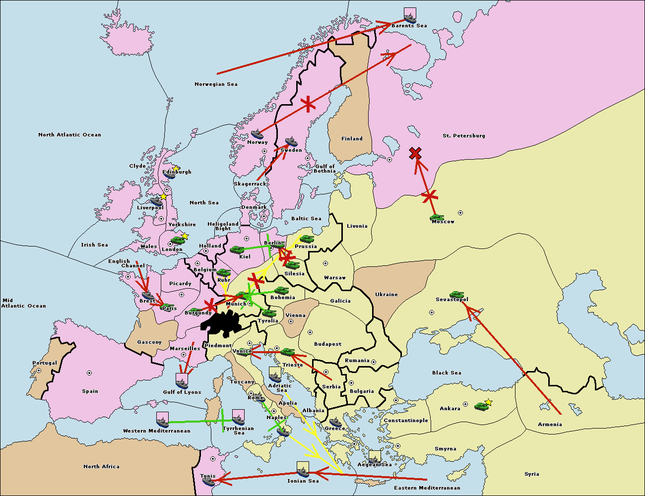 The fleet at Mid-Atlantic Ocean move to Western Mediterranean.