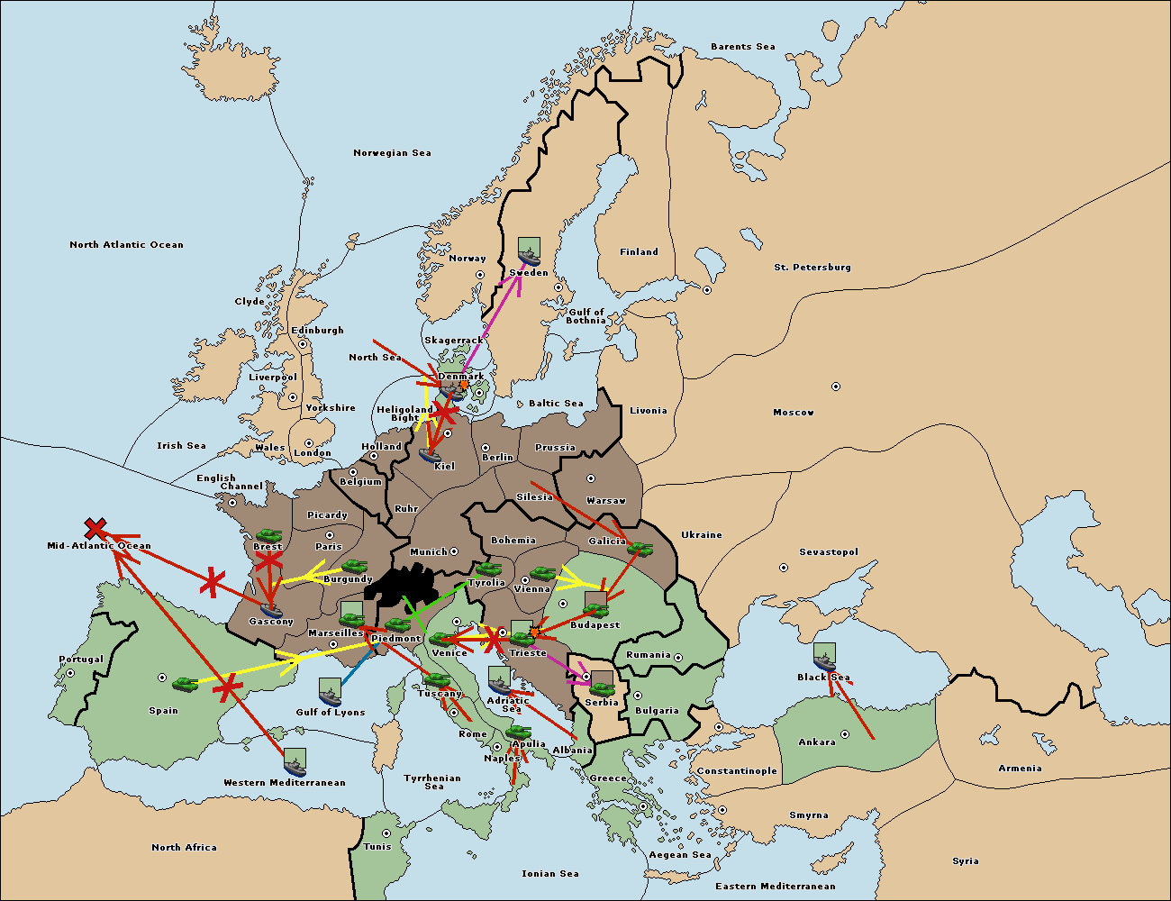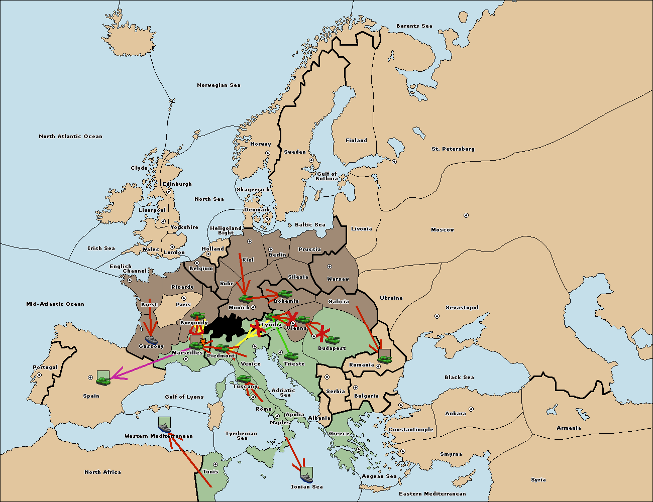 The fleet at Tyrrhenian Sea move to Gulf of Lyons.