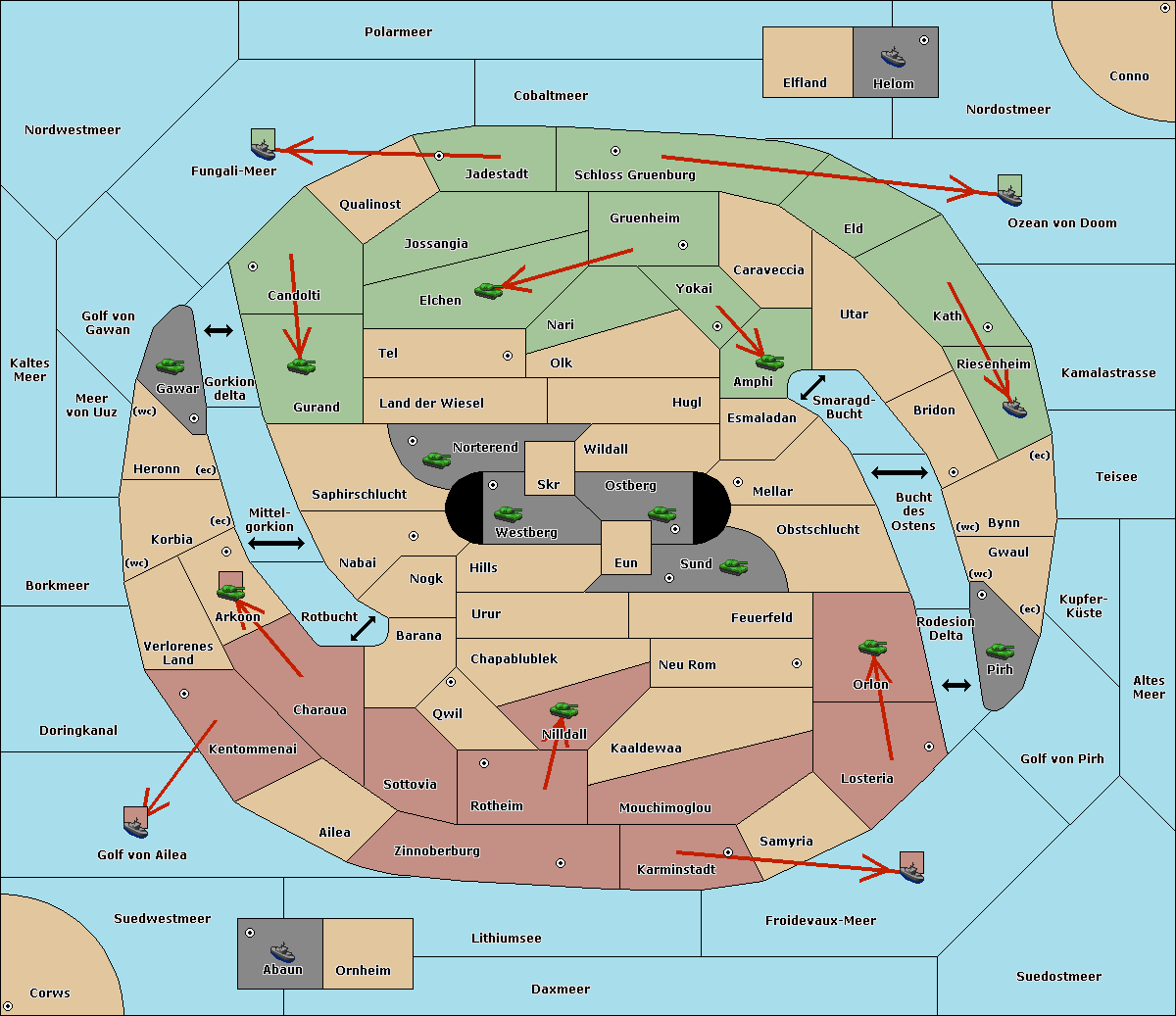The fleet at Schloss Gruenburg move to Ozean von Doom.