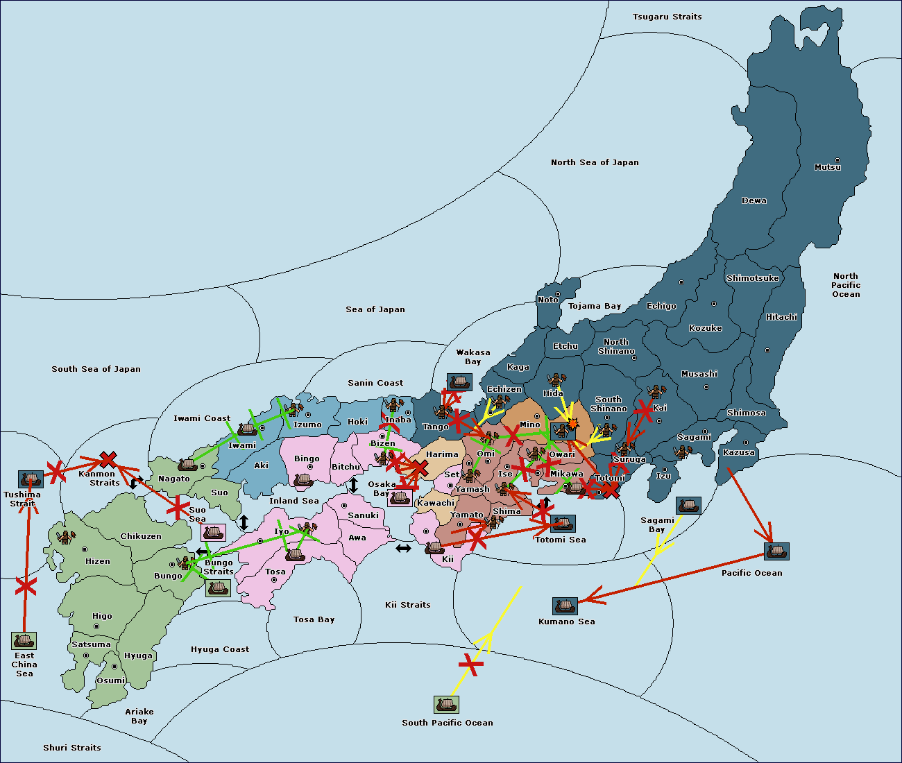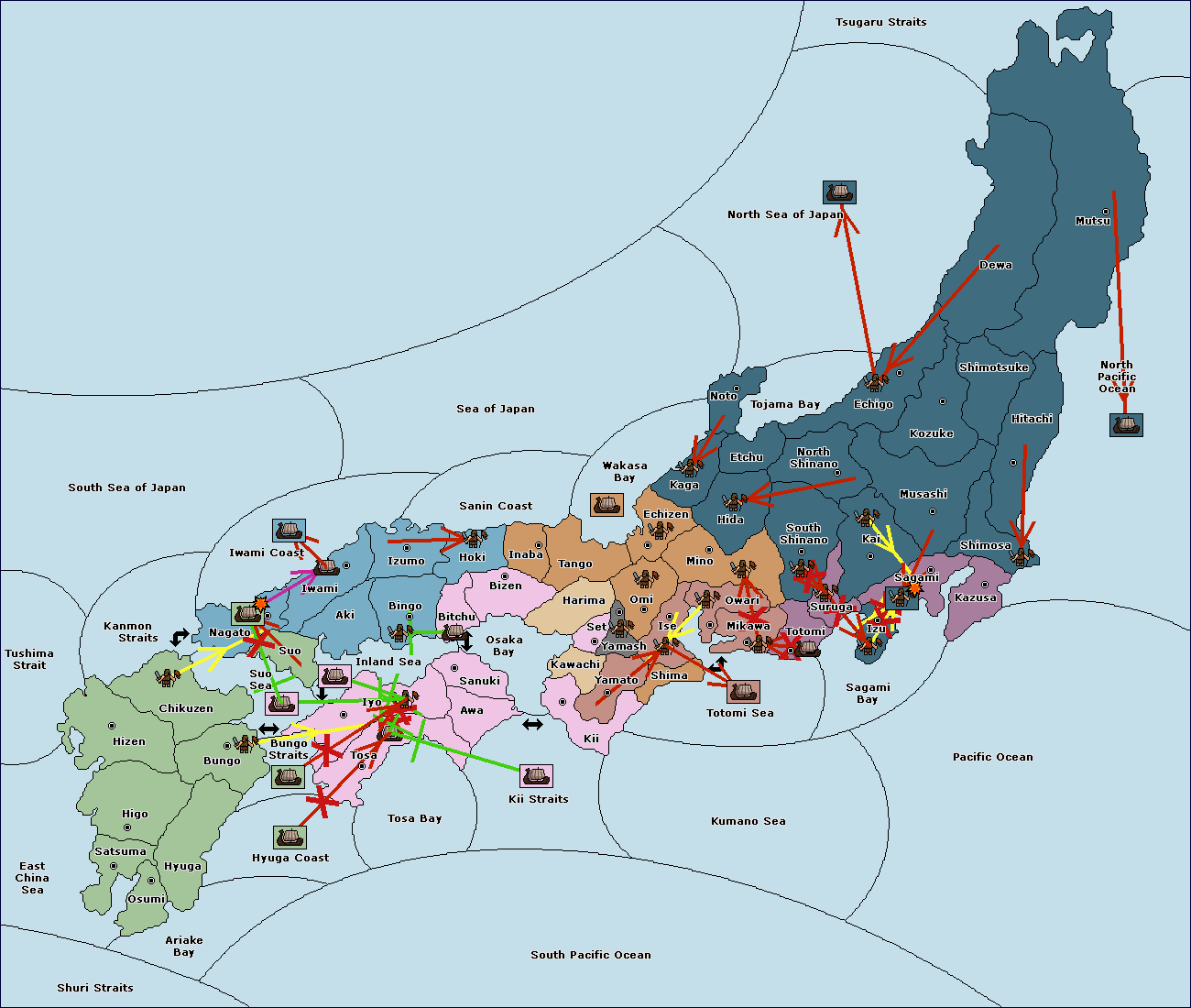 The fleet at Bungo Strait (1) move to Suo Sea.