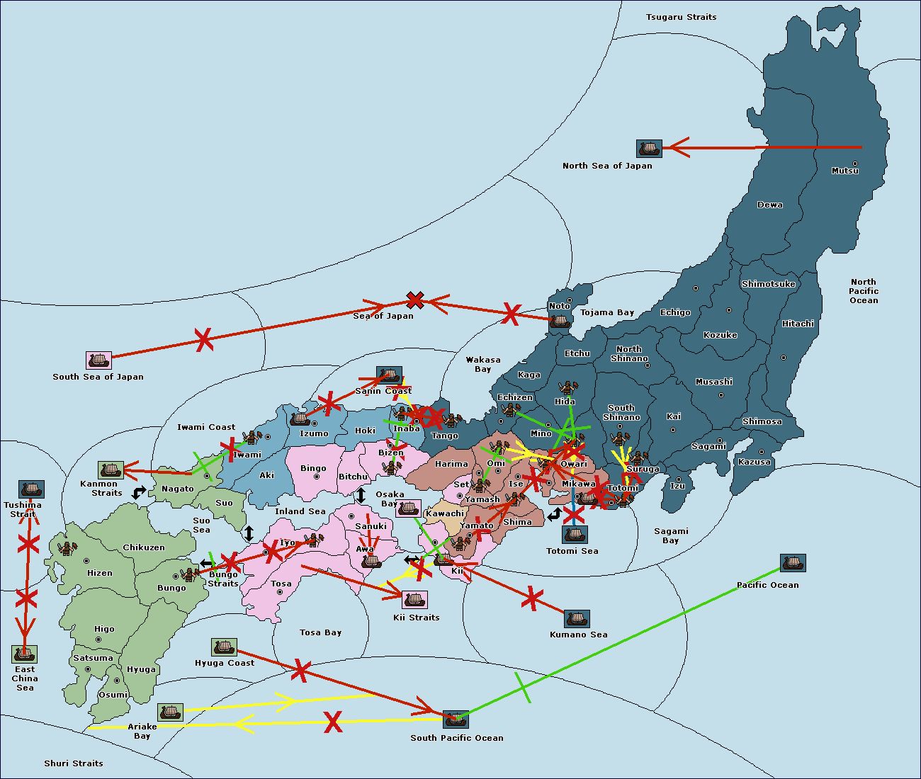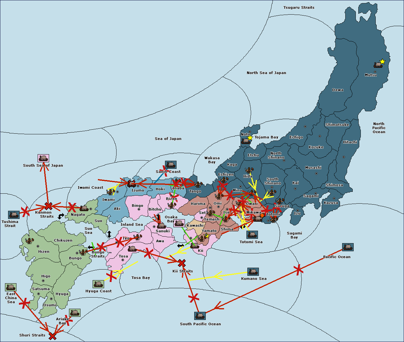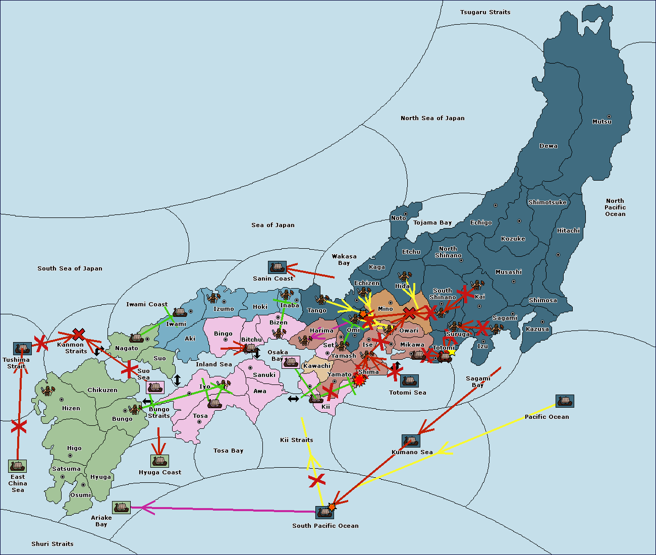 The army at Suruga (10) support move to Totomi (9) from Sagami Bay.