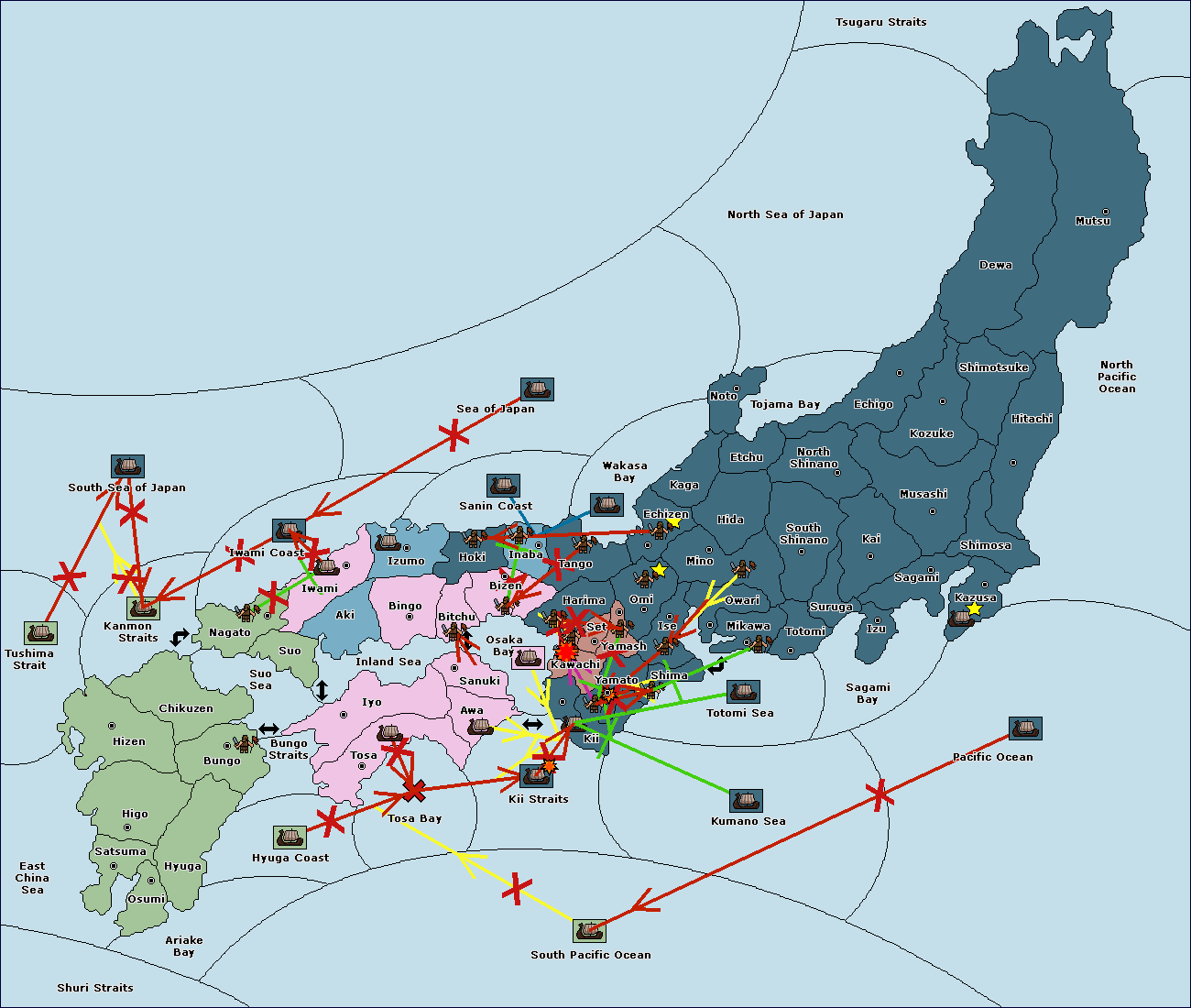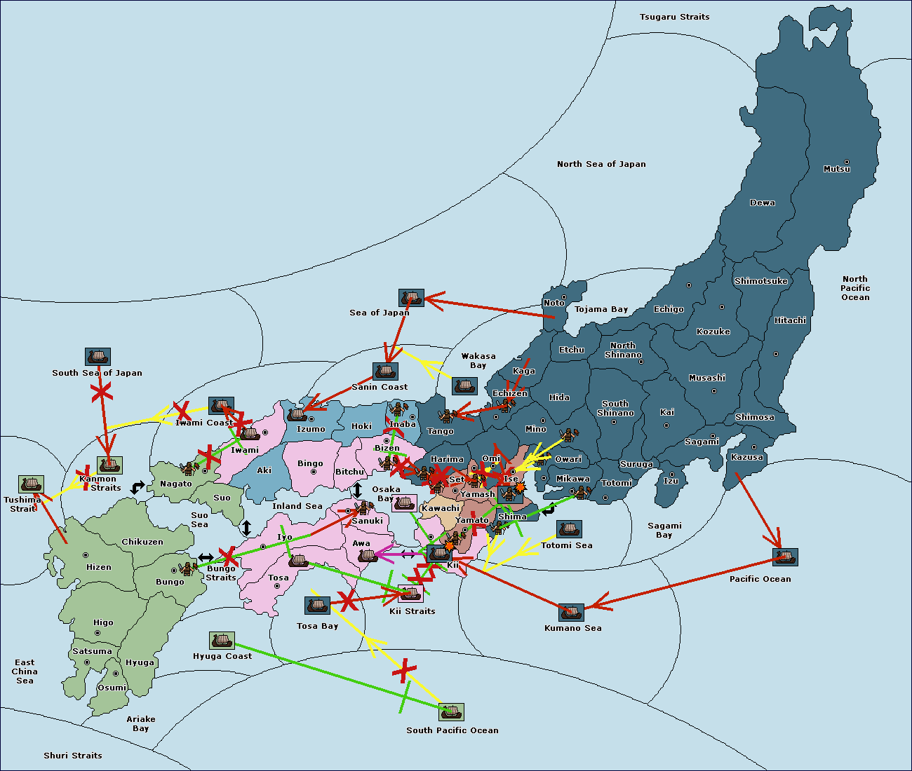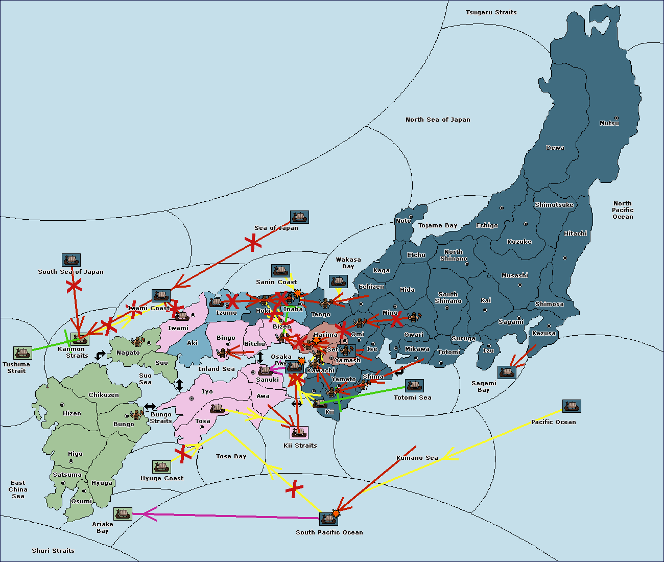 The fleet at Sanuki support move to Osaka Bay from Kii Straits.