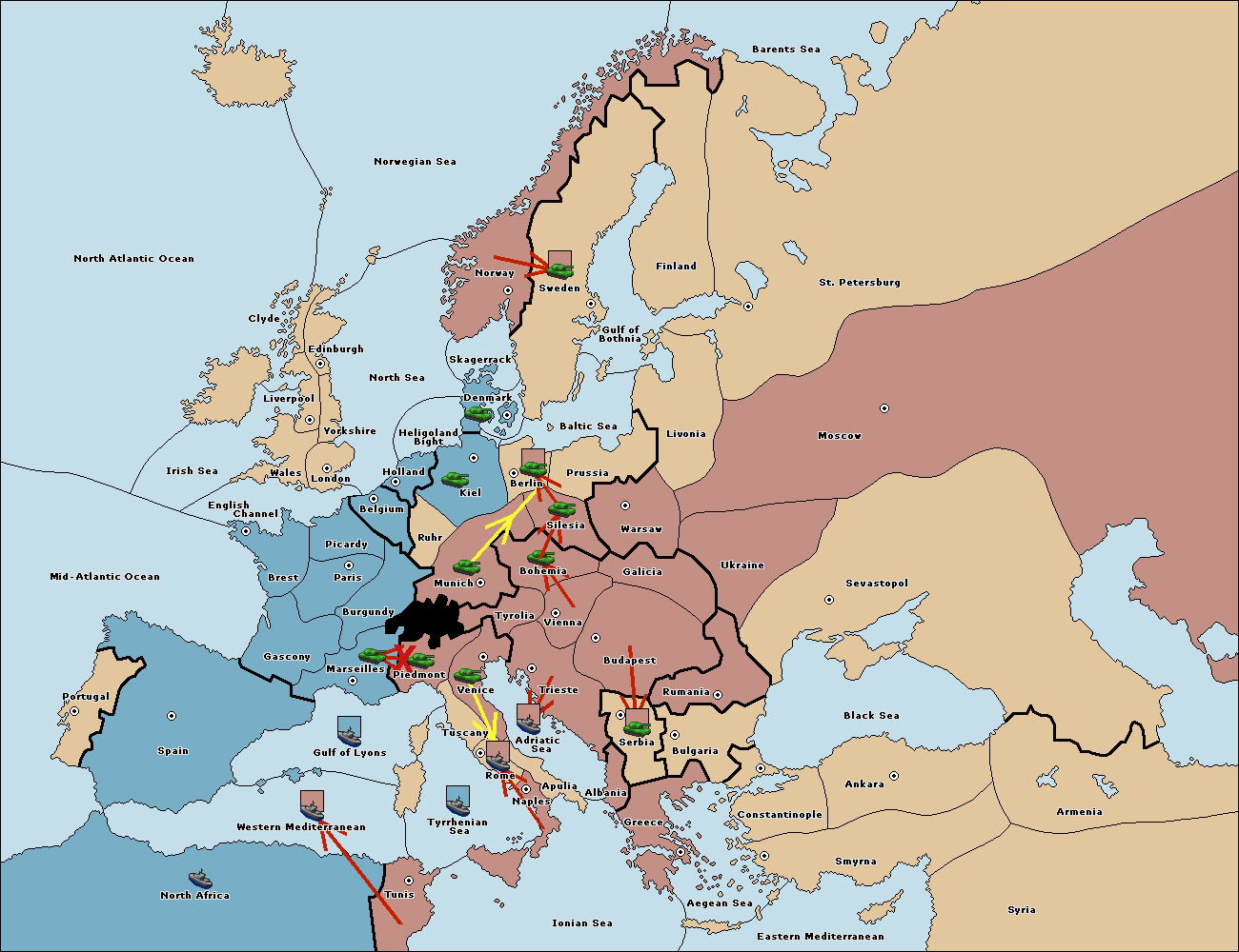 The fleet at Mid-Atlantic Ocean move to Western Mediterranean.