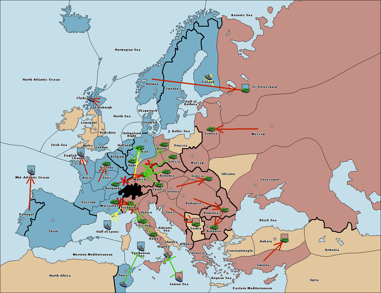 The fleet at Mid-Atlantic Ocean move to Western Mediterranean.