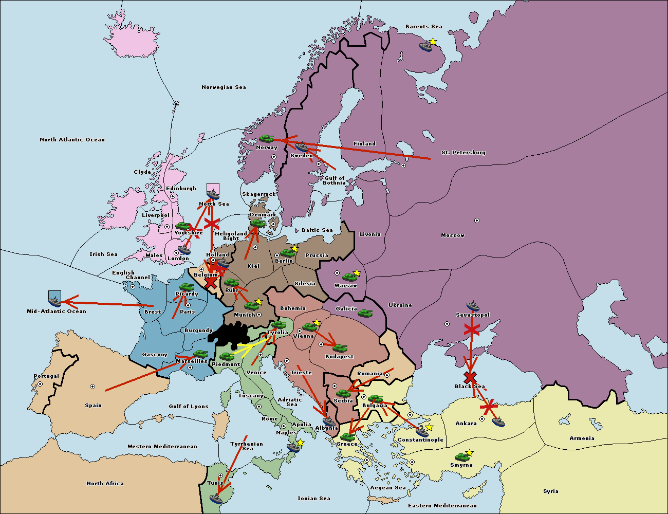 The fleet at Ankara support move to Black Sea from Constantinople.