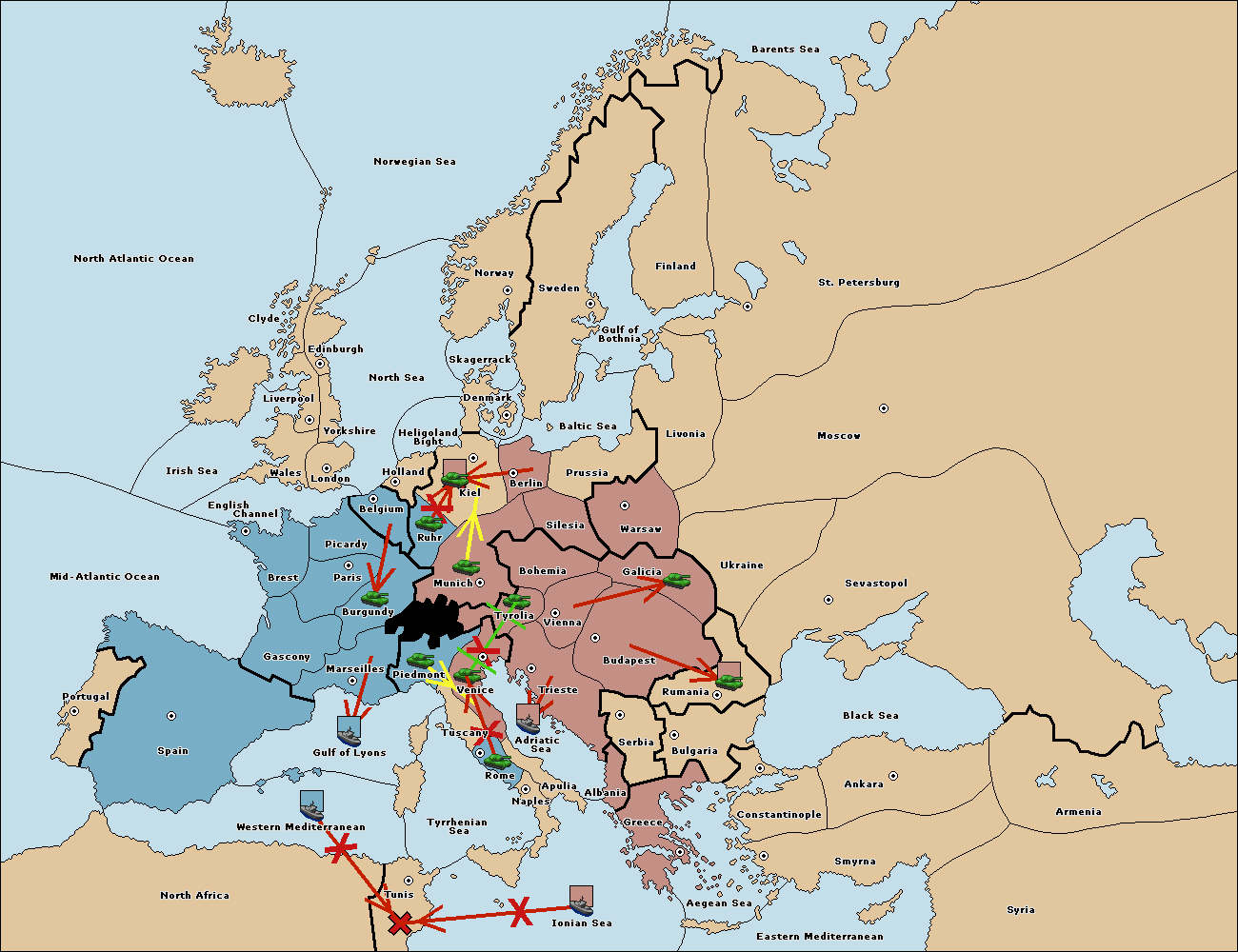 The fleet at Adriatic Sea support move to Venice from Tyrolia.